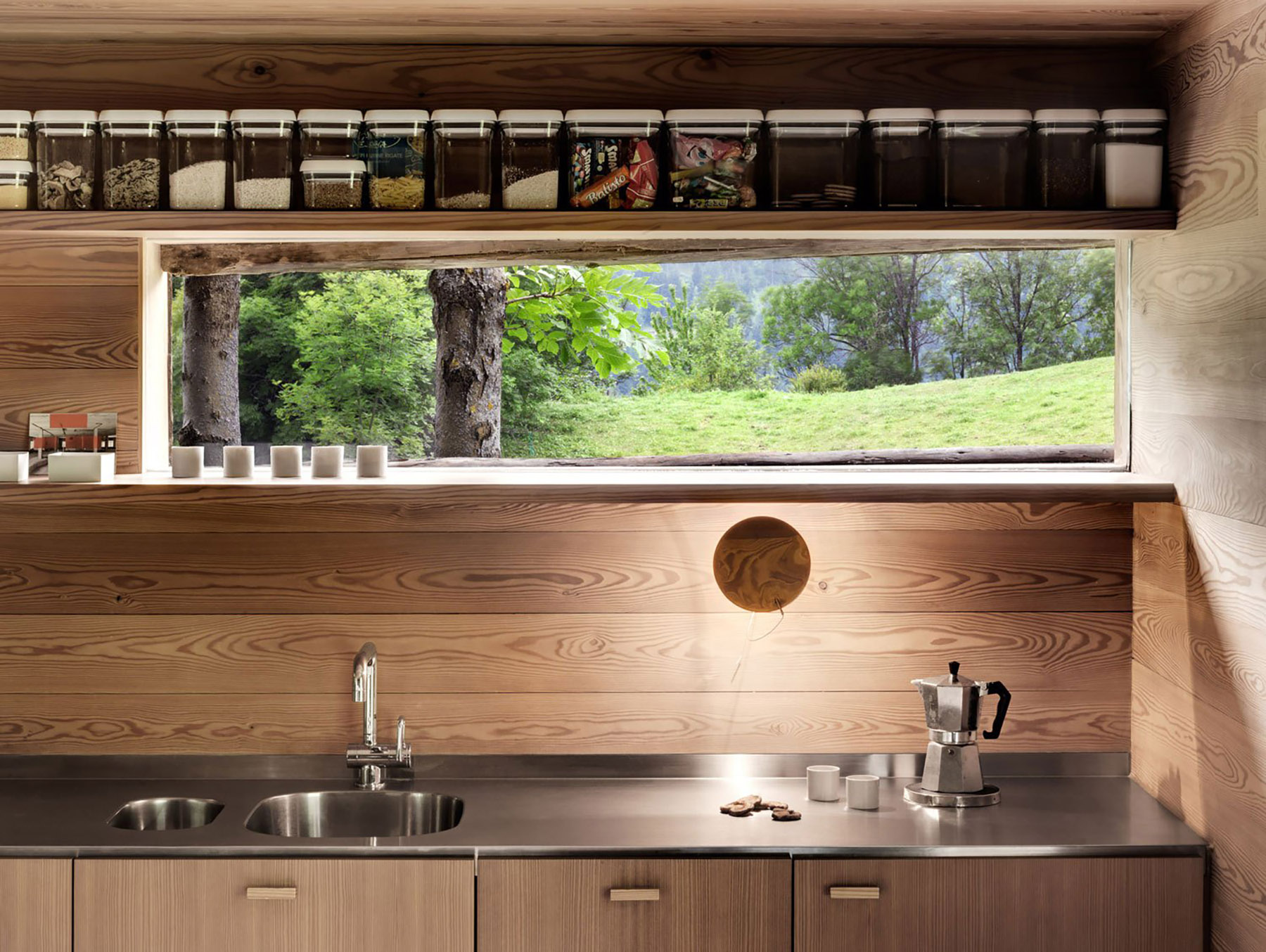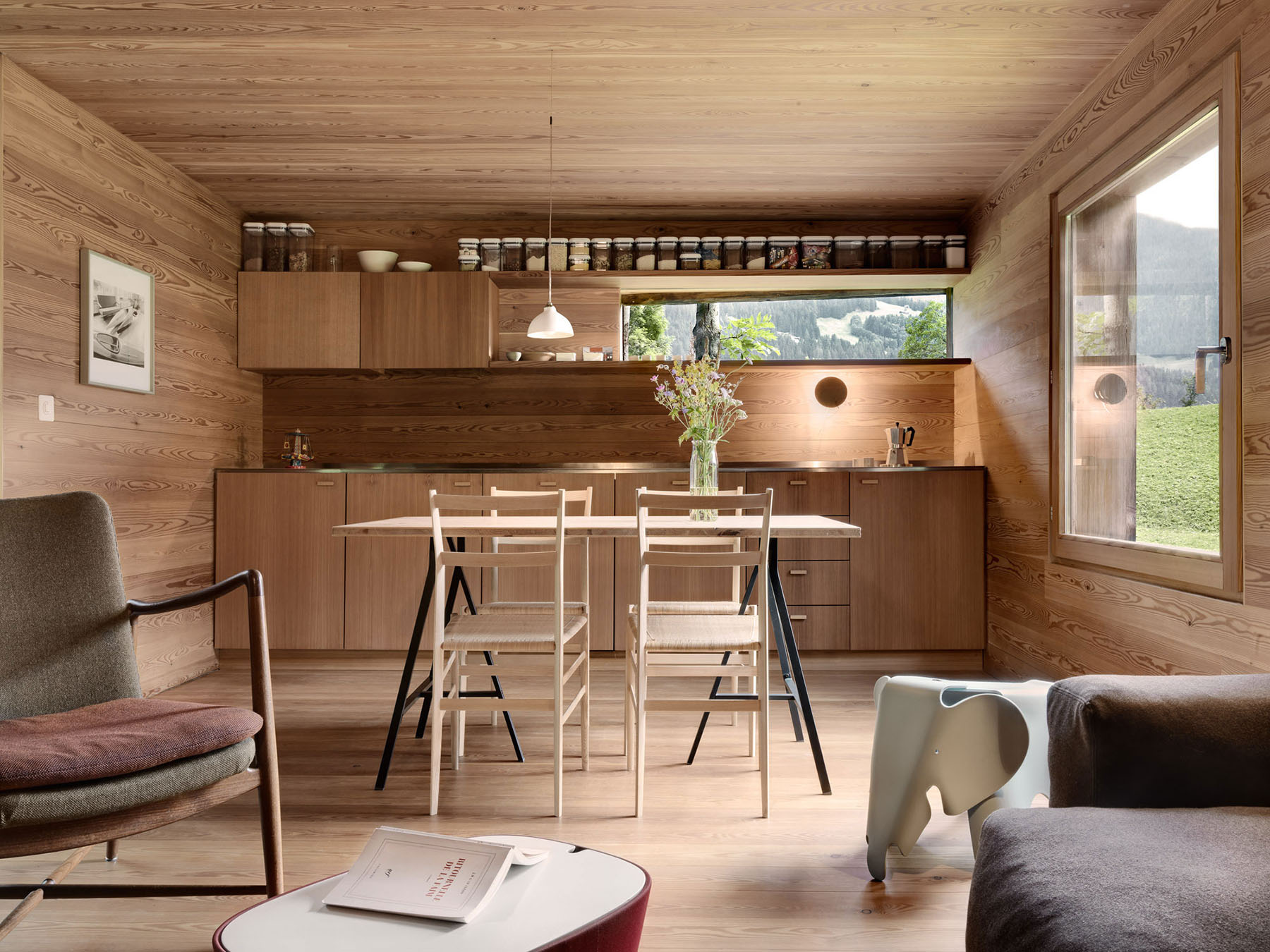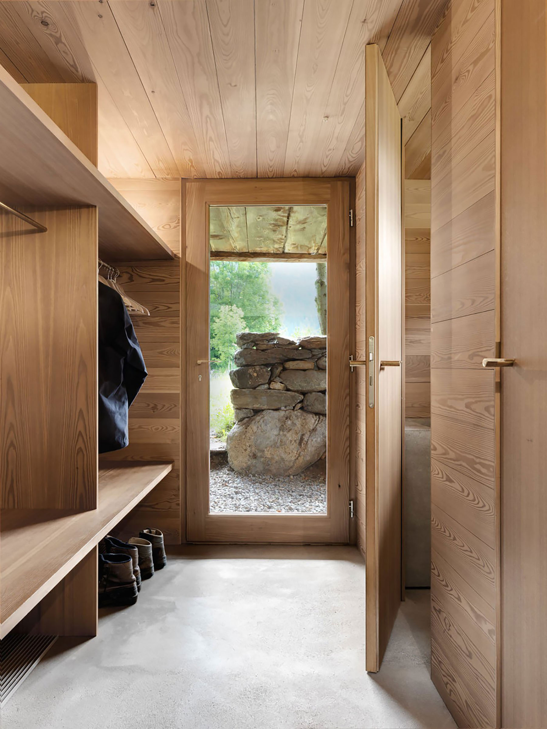 如果单纯从其简陋的外表来看,可能大家会想这是否是哪个牧羊人短暂的休息场所,不过这种困惑正是Rapin Saiz想要达到的视觉效果。走进室内你就会发现其内部精美的设计与粗糙的外观形成鲜明的对比。利用橡木打造的内部结构,温暖而明亮。而实木取暖木材则保证了冬日的室内温度。在夏日,随处可见的窗户则可以让居住者时刻体验室外新鲜的空气,以及欣赏窗外的自然美景。整个屋内的采光也以自然光为主,只愿为在这世外桃源般的自然环境中打造出一个大隐于市的奢华私宅。