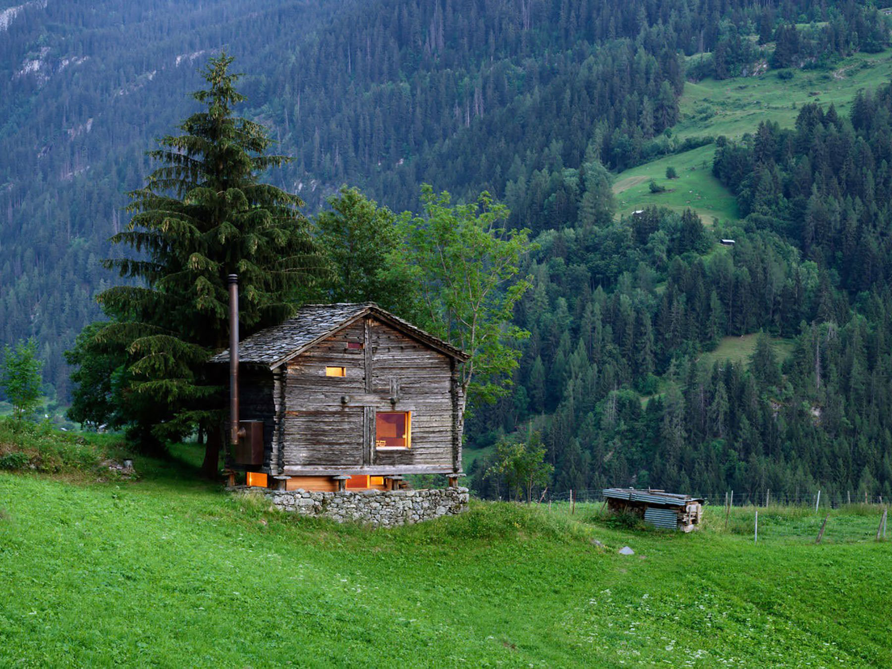 由建筑师Rapin Saiz打造的这栋山间小木屋坐落于瑞士一处风景如画的山区。看似不起眼的小屋与设计师本身的设计理念不默而合,因为Rapin Saiz所坚信的格言就是:“永远不要通过一本书的封面,来去判断它的内容。”而这个木屋同样如此,当你真正走进这栋建筑之后就会发现其中别有洞天。