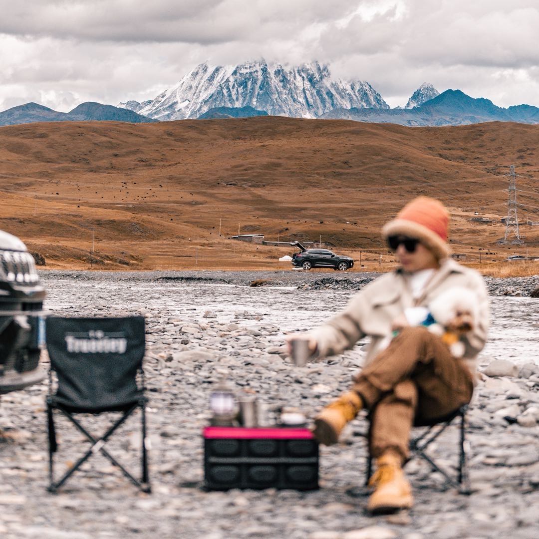 我们在树林间的芳草地上搭起了一个 Glamping 营地 , 一起乘着晚风 , 吃着烧烤 , 围坐夜聊 。