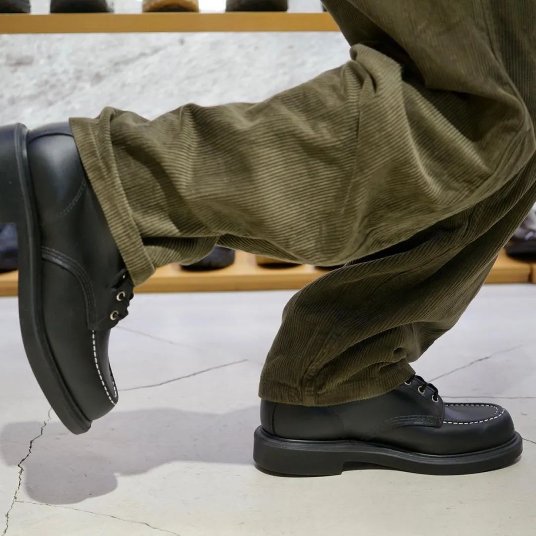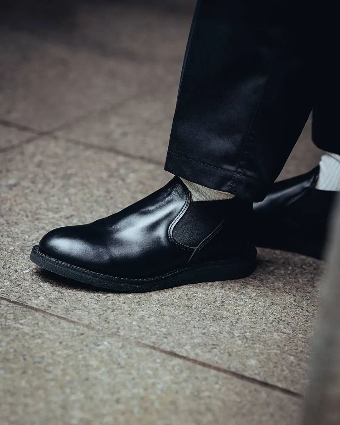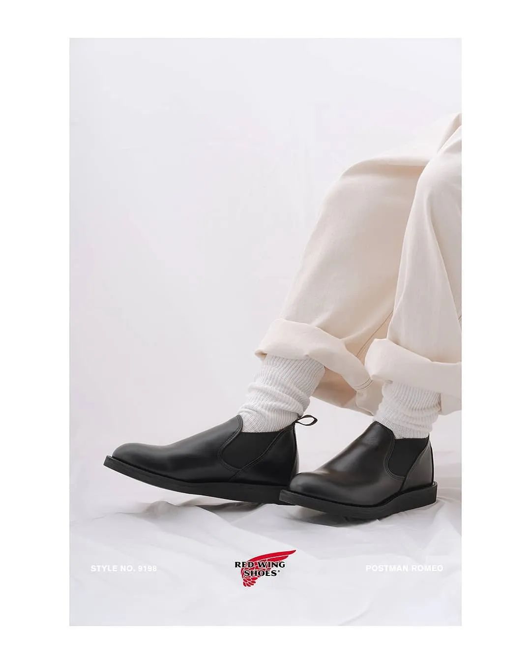 编号为9198的「POSTMAN ROMEO」结合了Red Wing在1954年发售的POSTMAN 101鞋楦和切尔西靴一体式的鞋身,是在去年春夏推出的全新低帮鞋型,CUSHION CREPE SOLE大底和CHAPARRAL LEATHER鞋身在提供一定舒适性的同时也十分契合如今CITY BOY的搭配属性,甚至Red Wing官方都在说POSTMAN ROMEO在今后会成为品牌黑色低帮鞋款中的主力鞋款。