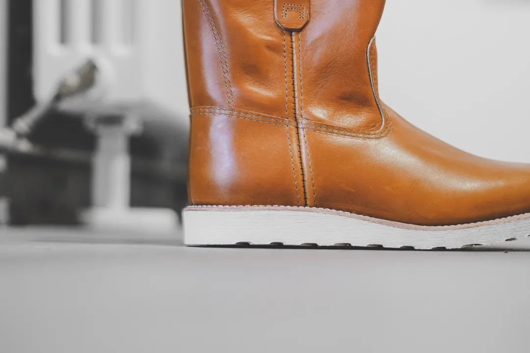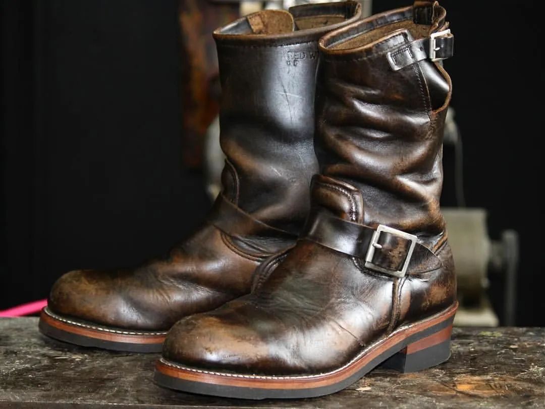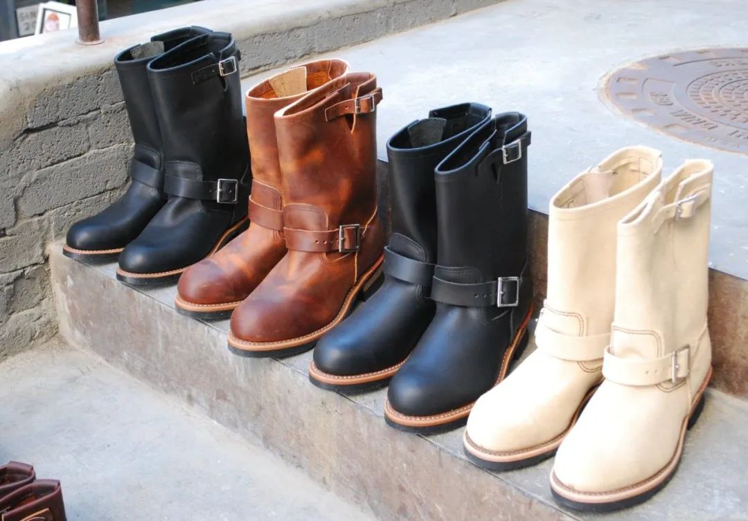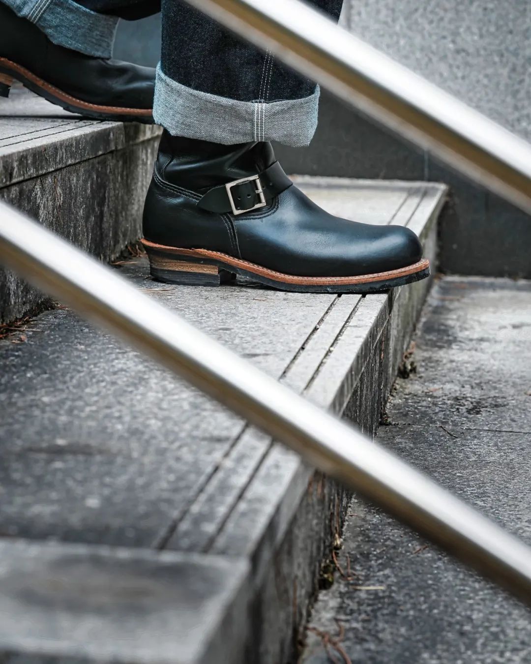 Engineer Boot于1938年首次出现在Red Wing的产品线中,整体廓形源于传统的英国马术靴,最初设计的目的就是保障铁路工程师以及工人在火车蒸汽发动机机房恶劣环境下双脚的安全。而到了1940s,Red Wing的Engineer Boot已经被蓝领和牛仔们普遍着用,也受到了彼时机车党们的追捧,Marlon Brando在之后1950s时期的频繁上脚成功让Engineer Boot破圈,成为当时美国文化的象征符号之一。