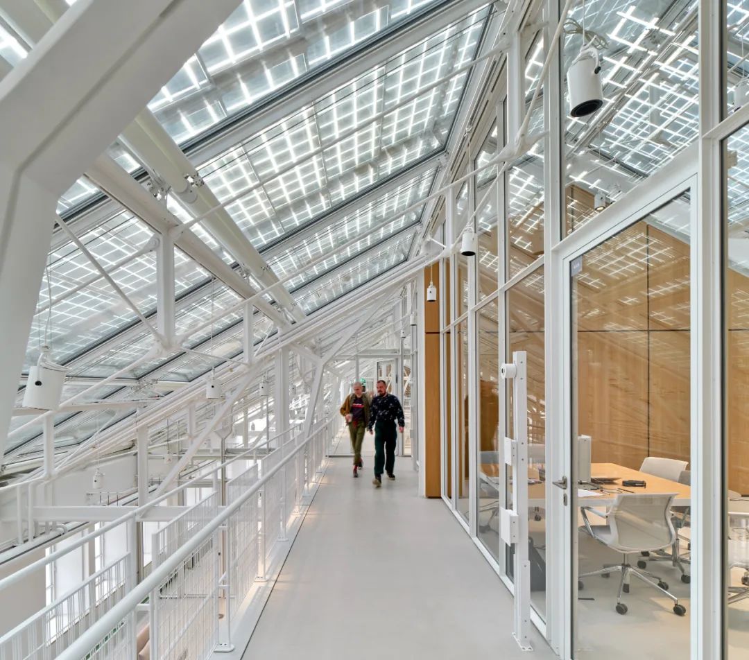室内采光使用蓝牙网状控制的VAC led光,每个光源可独立调控,以便适应不同需求。 且,这些光的能源来源于太阳能。
