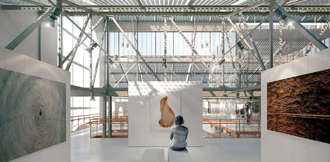 整个艺术空间结构可以大致分为三个层次,由外至内分别是:室外层(风、雨、雪、日照)、人群层(光、影、舒适)、艺术层(可控制光照、温度、通风),用于存放不同需求的艺术作品,做到“艺术无处不在”。