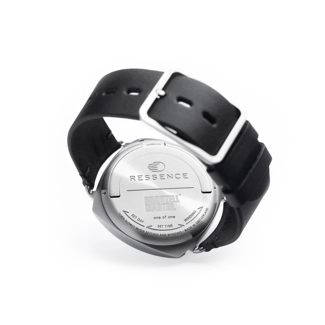 Type 1² SHA 拥有传统 Ressence Type 1² 的所有特征,包括获得专利的 ROCS 1.3 -Ressence Orbital Convex 系统、表背上弦和日期/时间设置、36 小时动力储存等,与众不同的是由 Shantell Martin 创作的表盘,简约设计为艺术和时间的共存提供完美空间,而从表盘到包装,每一个细节都好似创造力的画布。值得一提的还有 Type 1² SHA 的每条线——均由超薄黑色永久记号笔手绘。