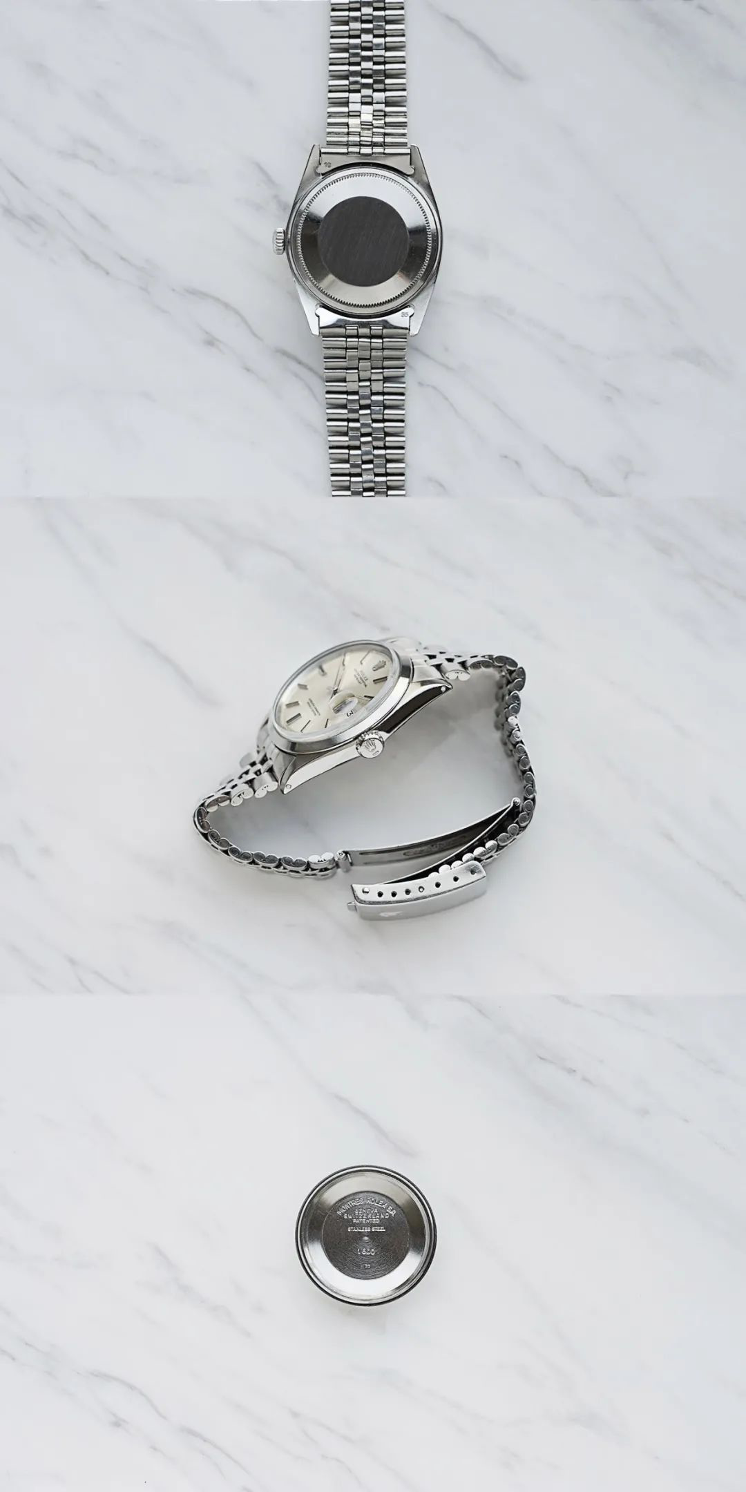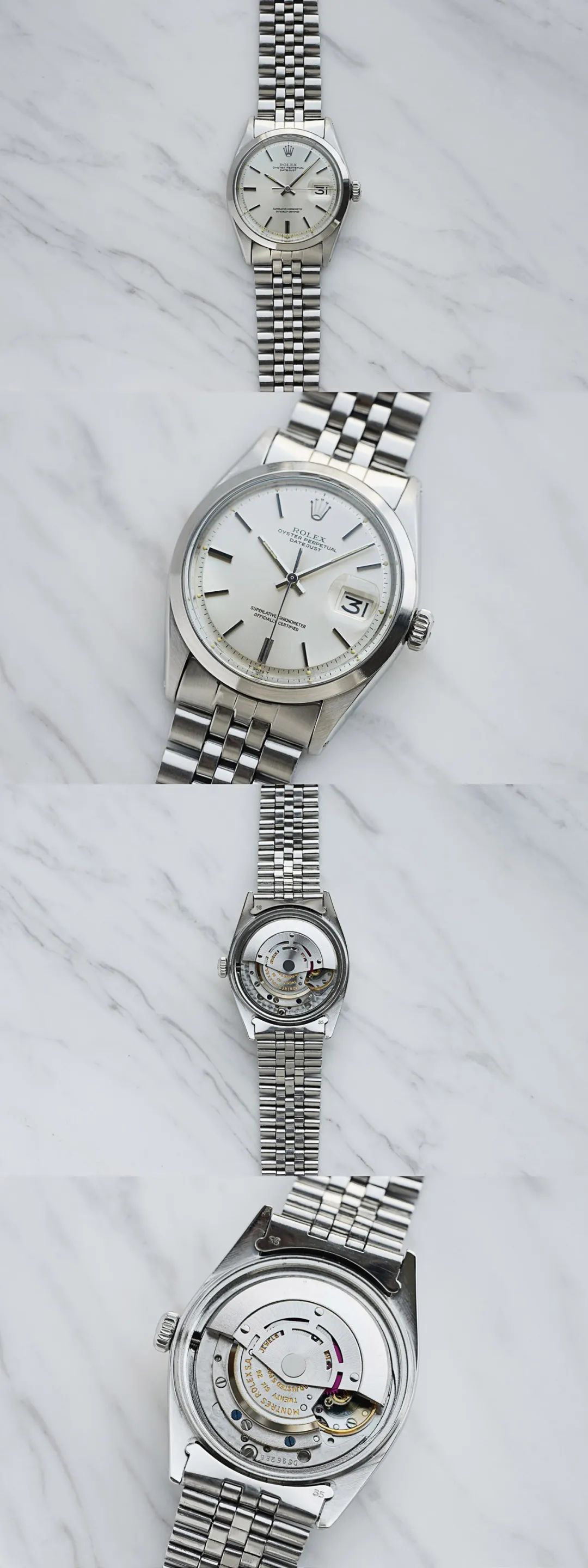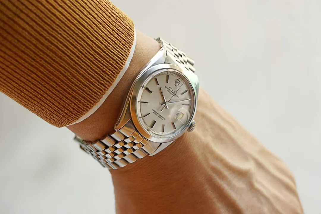 这是一枚非常经典的古董ROLEX日志型蚝式男士钢表,更是易于辨识的著名腕表。型号1600,1970年第二季度瑞士生产,不论是美学风格还是功能,日志型始终跨越时代洪流,从审美角度来看,在经历了岁月洗礼之后,早期日志型腕表保留着最初最纯粹的美学元素。1600标志性的光滑外圈,坚固厚实的蚝式防水表壳直径35mm。