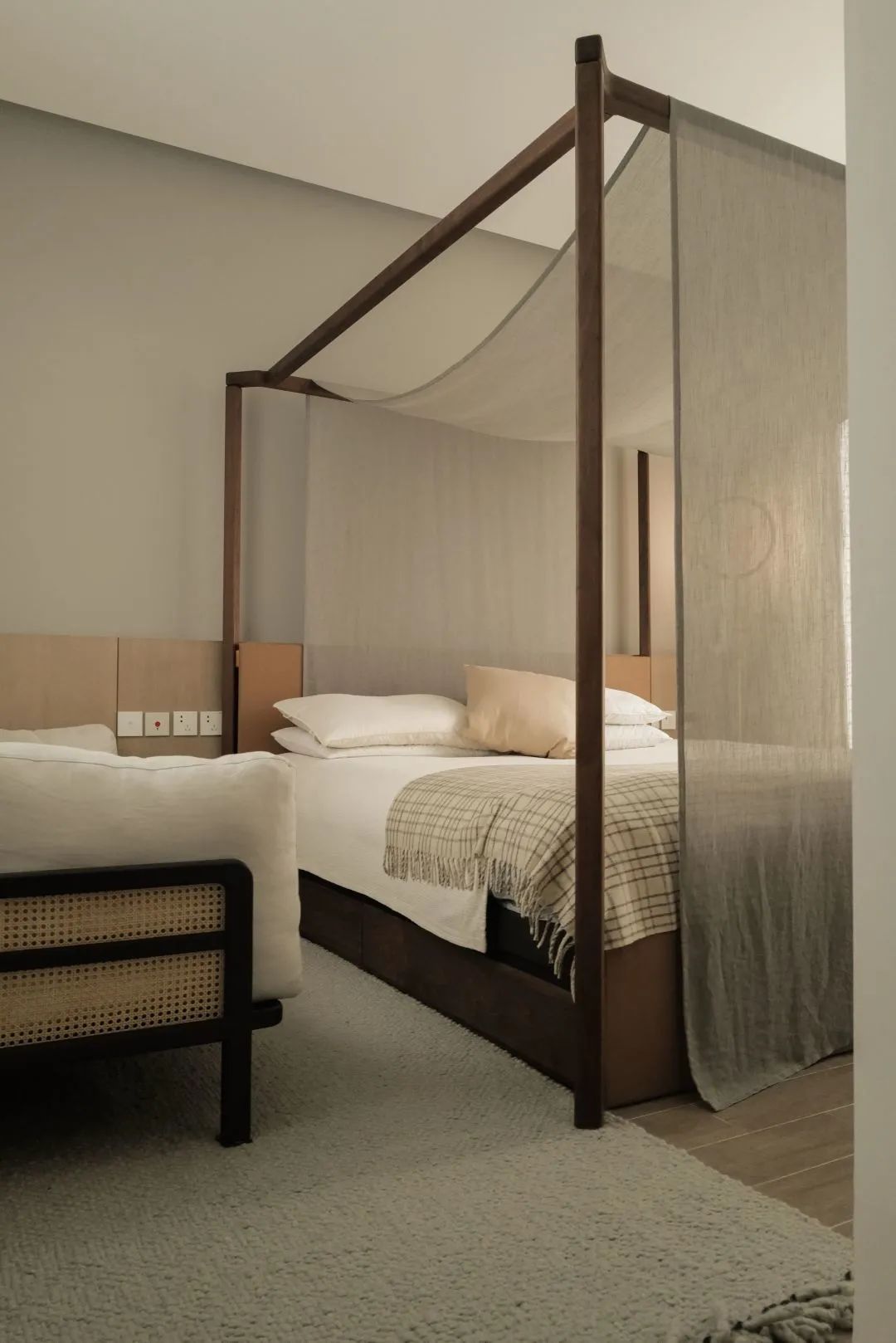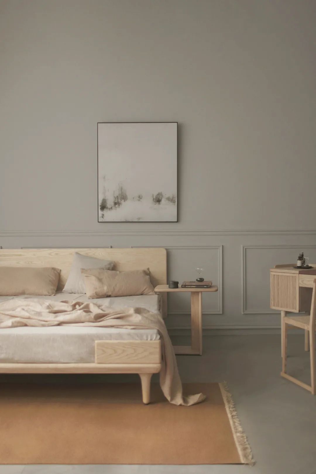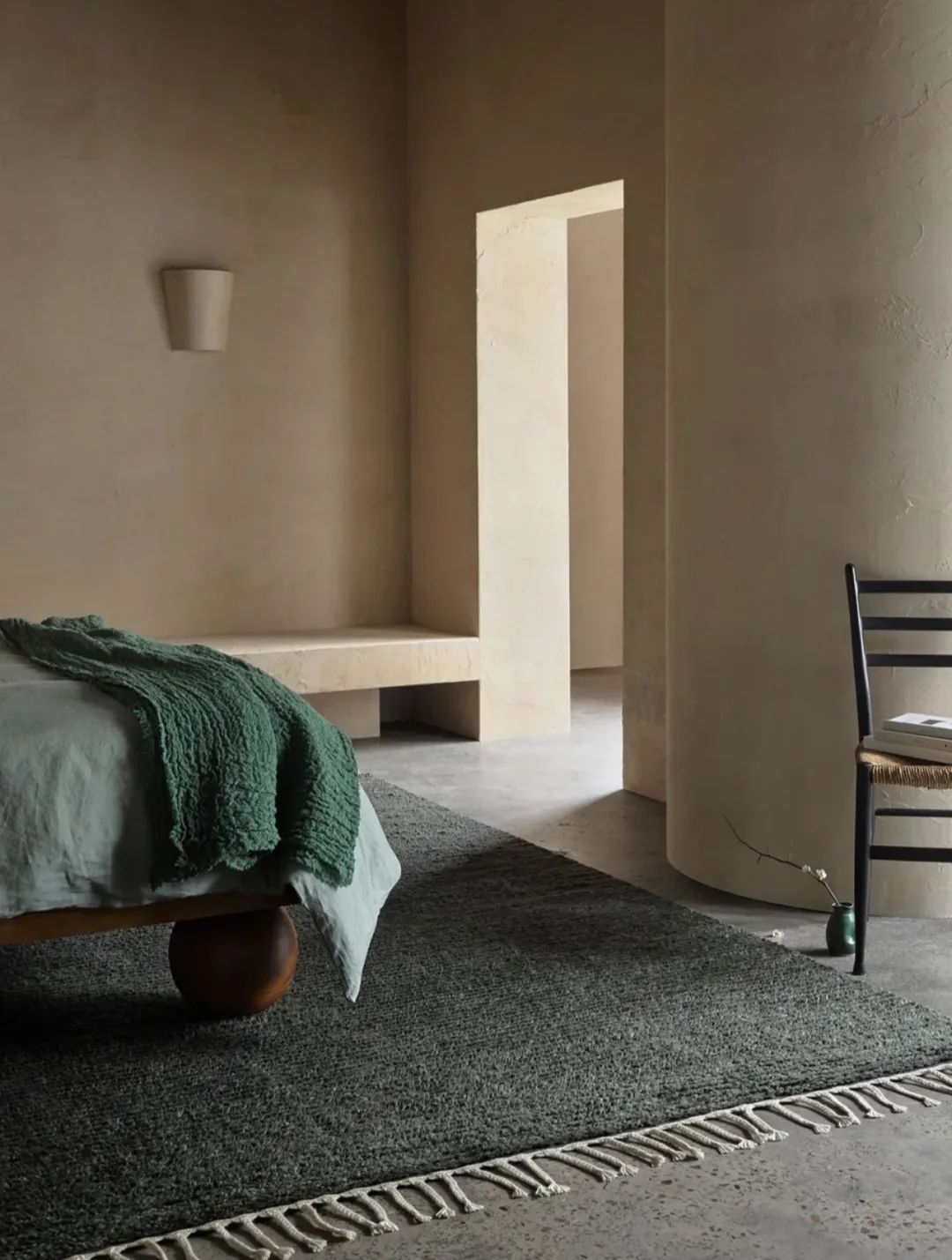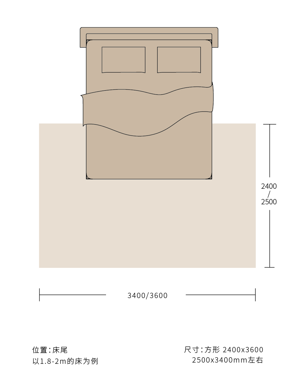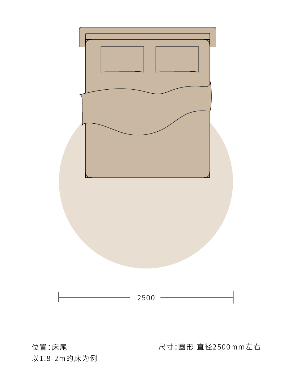卧室地毯通常建议放置于床尾和床侧,方形或圆形皆可。材质应选择较为柔软亲肤的类型,给脚底舒适触感,色彩可与房间主色调统一,衬托床品以起到点缀作用。