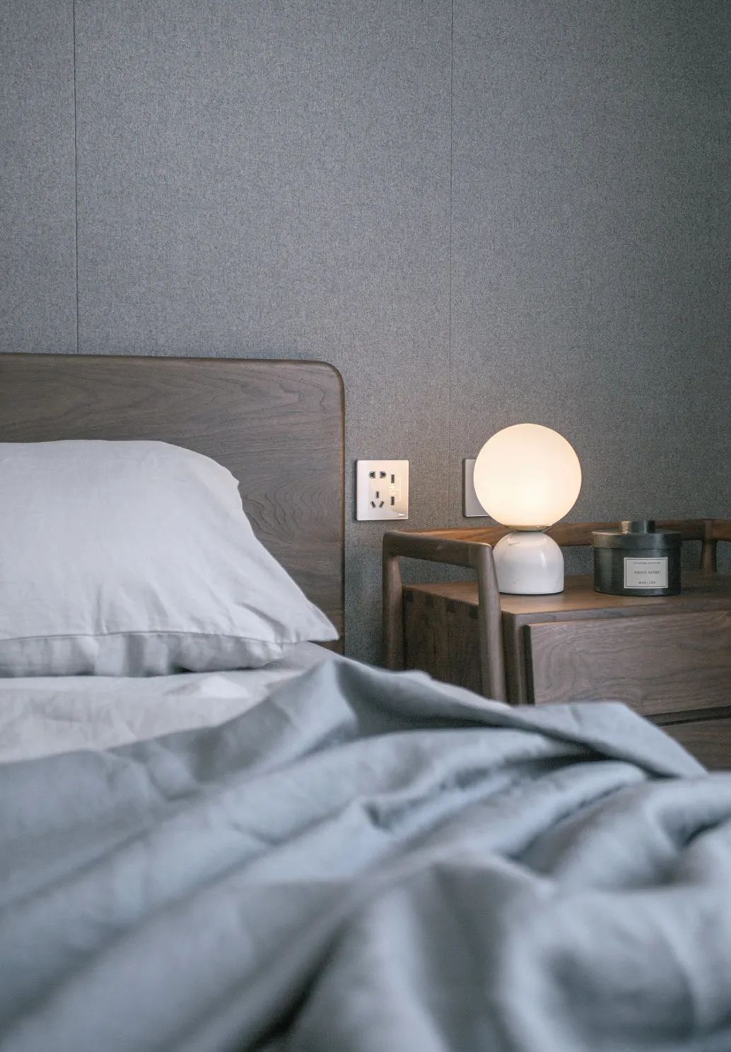 卧室中床头灯作为辅助光源不宜过亮,照度小一些即可,且色温尽量选用暖色调,营造温暖舒适的氛围。
