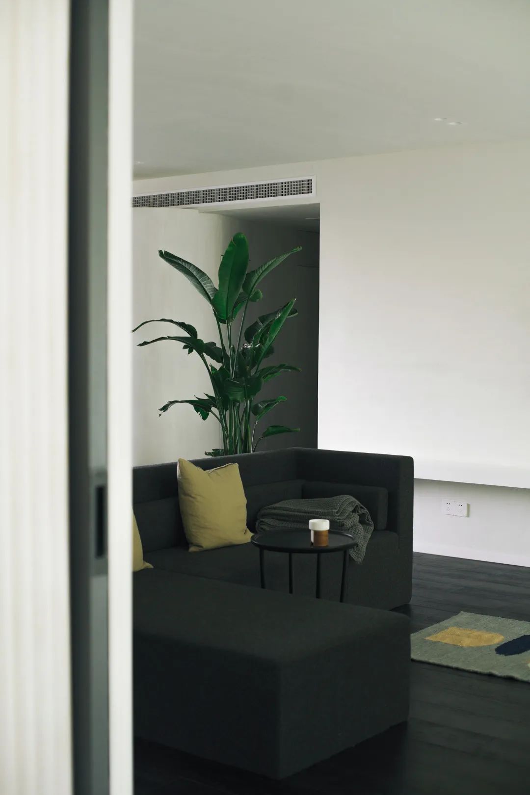 客厅的角落可以摆放中性的盆栽植物,选用形态柔和、叶片较大的植物(例如龟背竹、橡皮树、琴叶榕等),美观又便于打理。