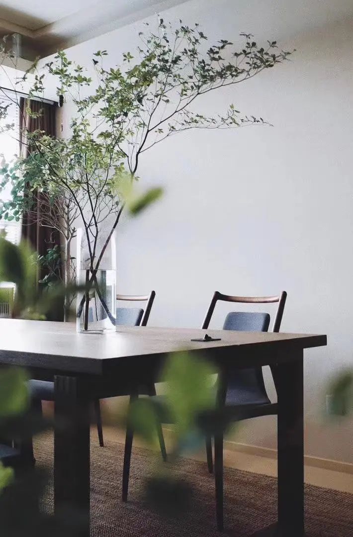 餐厅极具烟火气息,餐桌上摆放一小扎鲜切花束(色彩鲜艳、丰富或单一品种、色系皆可)配以轻盈的花器,即可营造舒适氛围。同时花草散发出来的清香也在不同感官上增加空间的立体感。
