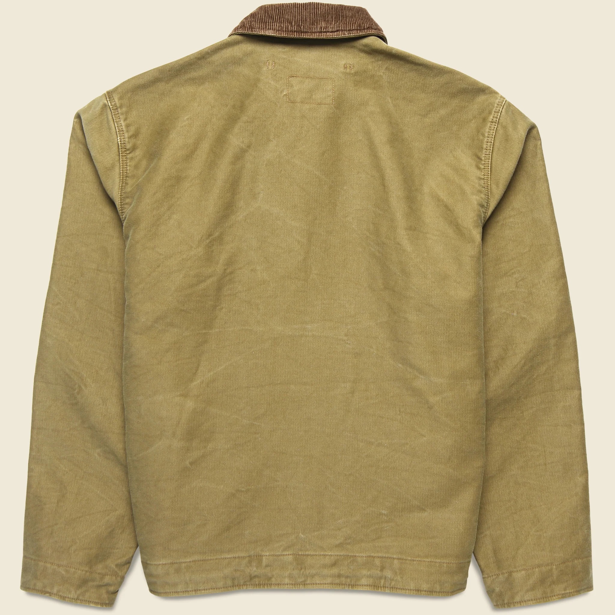 RRL 的每一件单品都采用世界顶级面料精心制作,包括这件 Corduroy Collar Deck Jacket 。这款复古风灯芯绒领甲板夹克采用特别研发的复刻版丛林布制成,这是一种轻盈的棉质面料,触感柔软且防水。其原型是经典 N-1 海军甲板夹克,同时融合现代元素,应用棉缎面料作为前片内衬,以方便叠穿,整体轻便透气,适宜全年穿着。