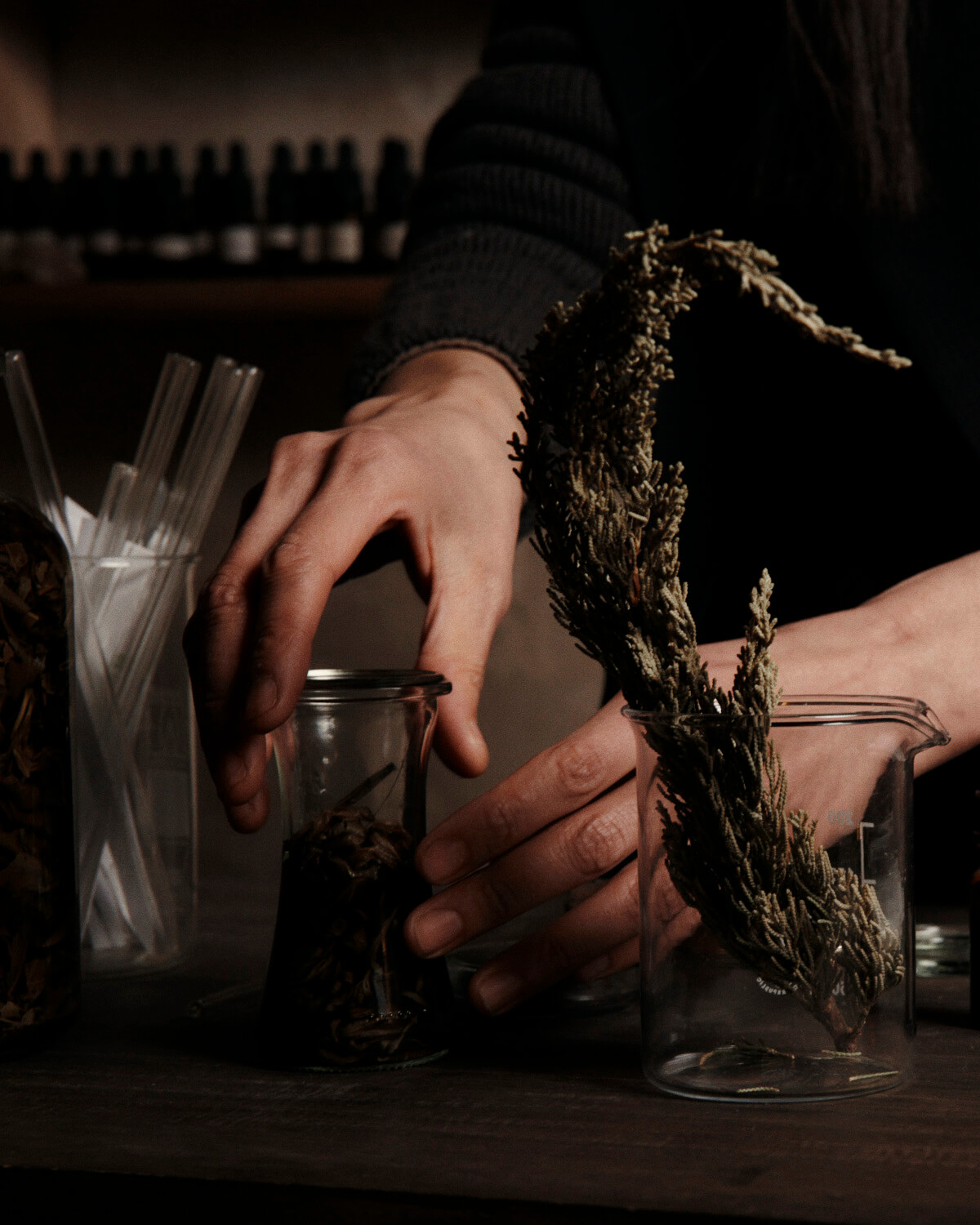 第三种仪式就是调配天然香水,这个操作仿佛厨师或者炼金术士。首先 Ryoko 要熟悉各类植物和香味,然后去不断尝试不同香味之间组合之后的神奇味道。为此她还专门去到了广岛,与一位日本声音艺术家进行了合作,大家一起创作出了13种不同的香味,并配合专辑一起发行。