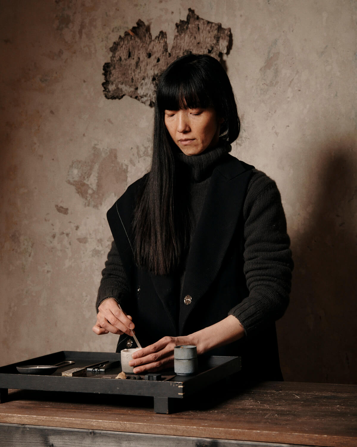 在日常进行香味仪式演绎的时候,Ryoko 首先会进行茶道,有趣的是她如今非常喜欢中国的茶叶,尤其是乌龙茶和红茶。 通常她先会把开水倒入茶壶之中,然后倒掉。接着再将茶叶放入,释放出茶叶的香味,最终加入热水去品尝。