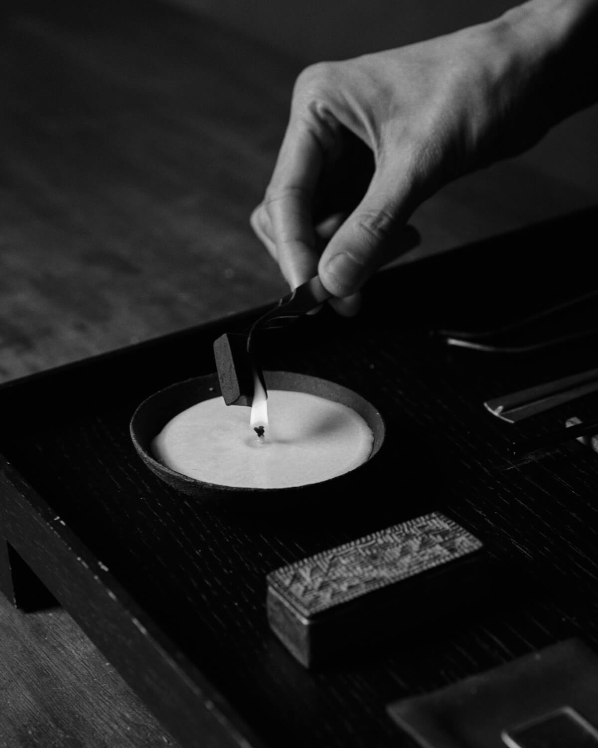 第四种仪式为香道,也就是焚香。在日常上香时,第一个步骤其实就是点火。当香燃起的那一刻,我们就会自动进入到另外一种模式,它会让大家平静下来。