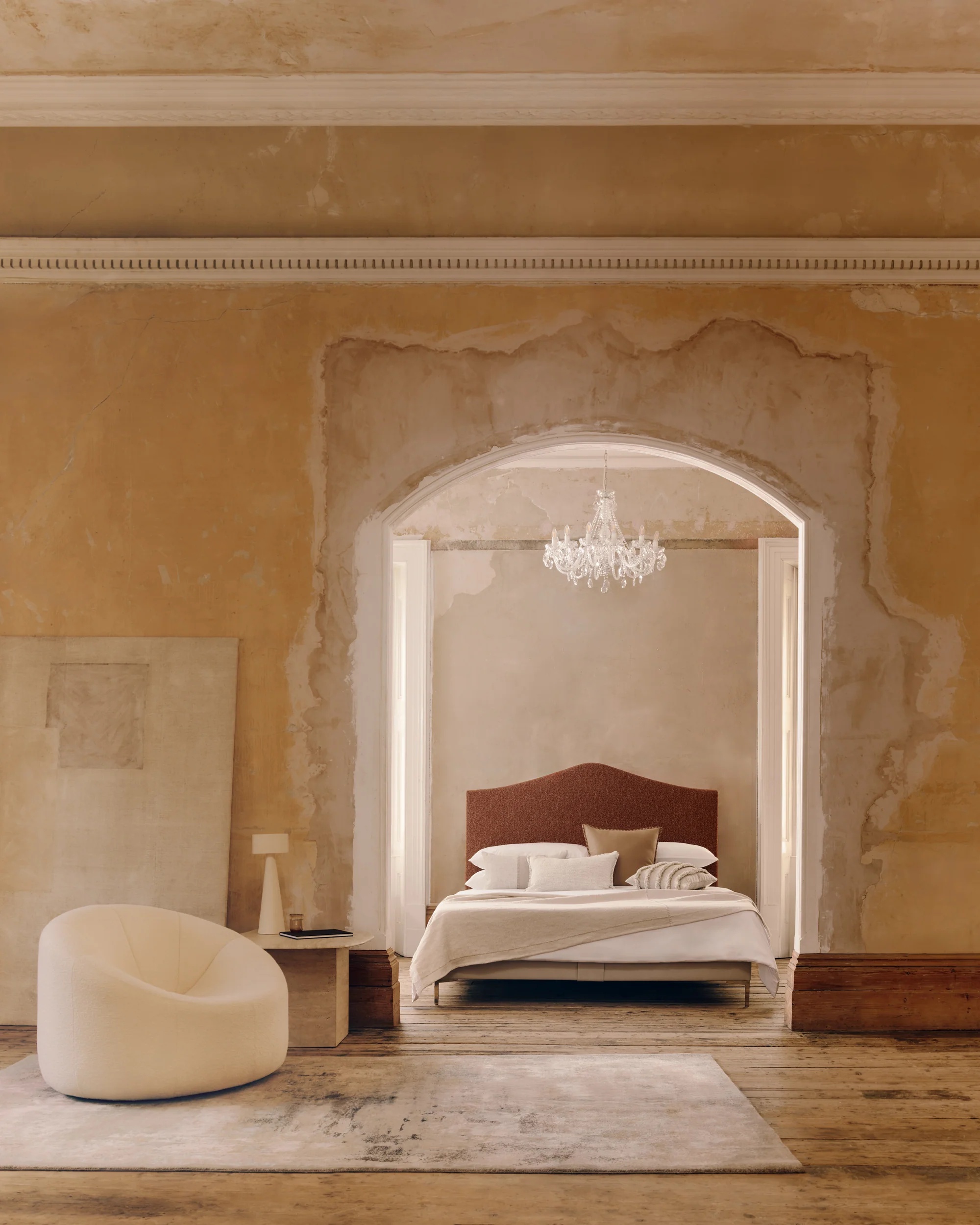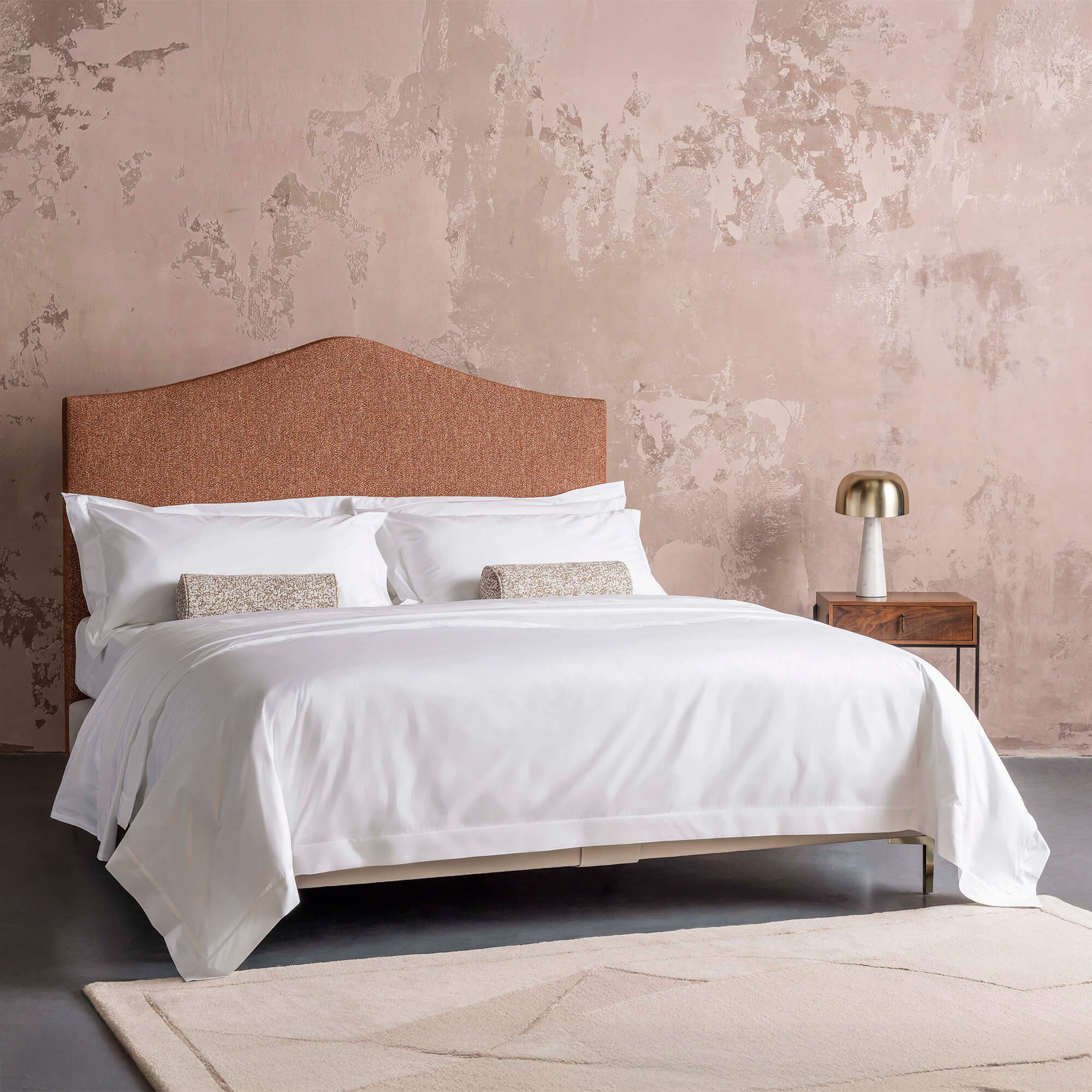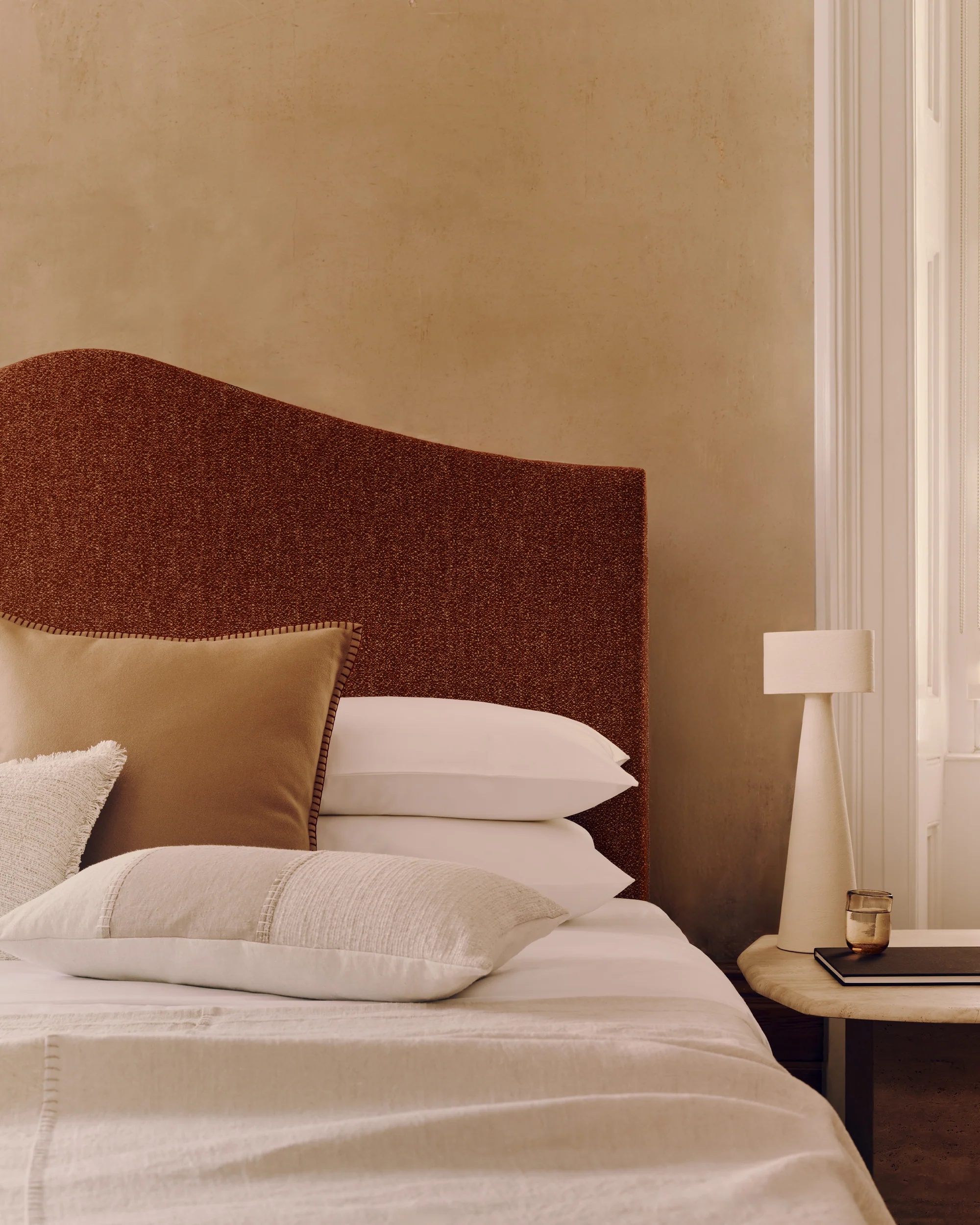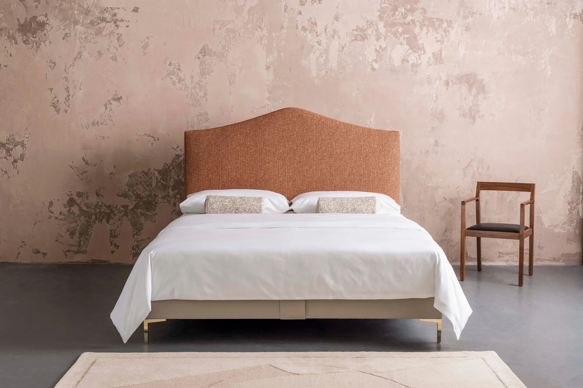 Alex 凭借独特的倾斜曲线和简洁线条,已成为卧室升级的首选。包含床头板和软包床架,Alex 整体曲线轻柔,风格简约优雅,自然融合现代主义造型与质感舒适的软包面料,亦是低调奢华的精致诠释。由 Savoir 伦敦和威尔士的工匠精心打造,Alex 的弧形床头板采用天然材料手工打造,并经手工包覆,以呈现独一无二的质感。床体采用 Kirkby Magma 面料,与床架底座的 Kirkby Sahara 面料相配。