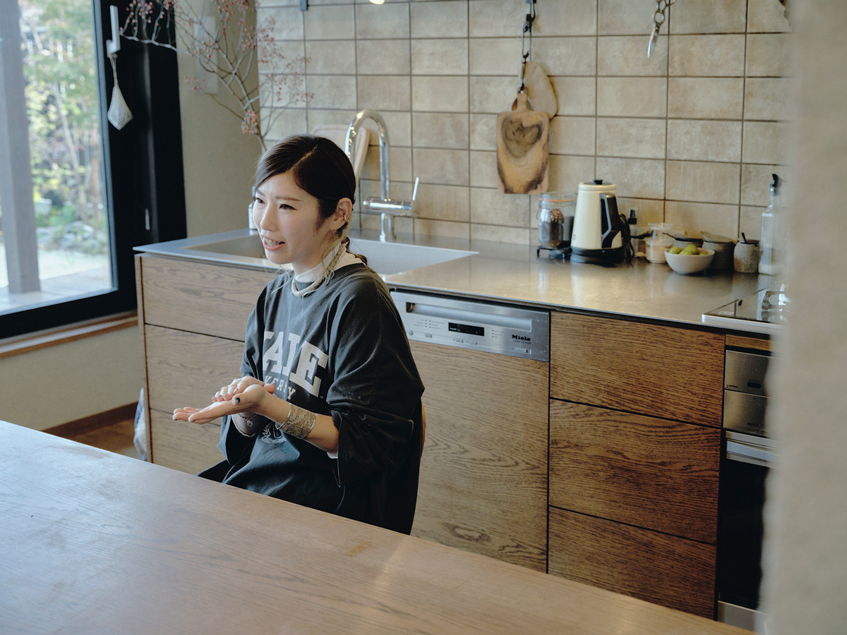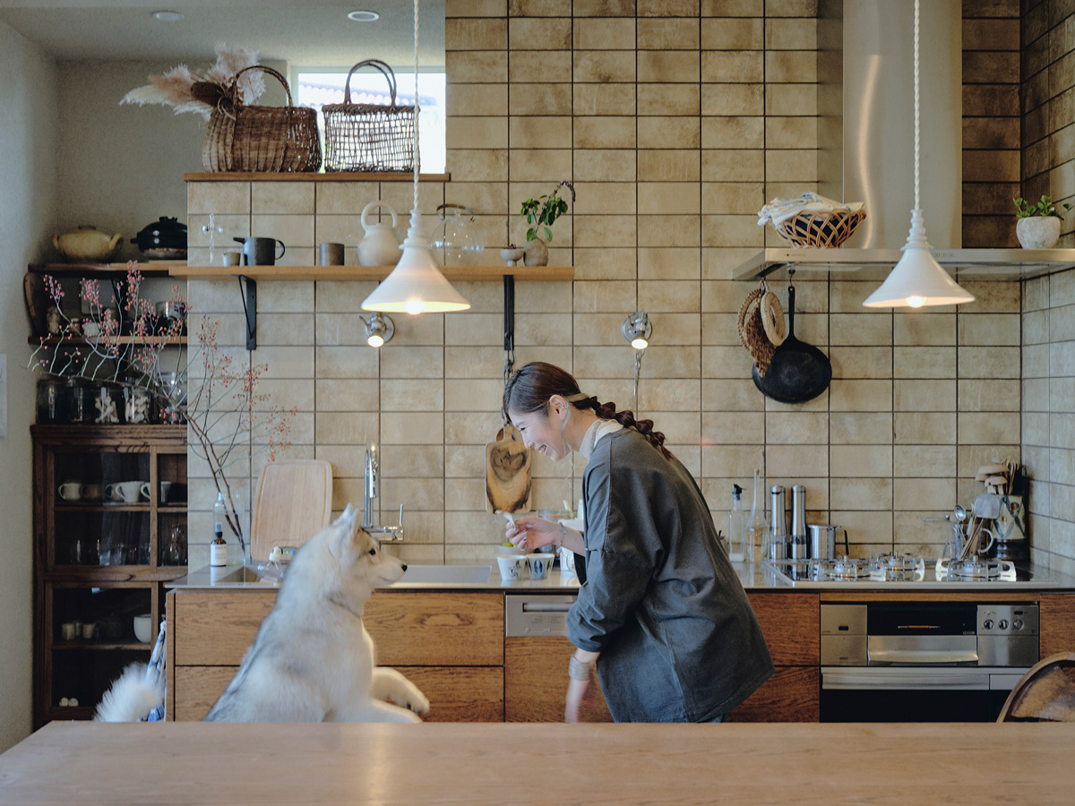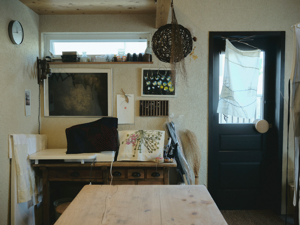 此外工作室中的小物,都是靠林佐代子自己DIY所制作布置而成,因此也有着很大的成就感。之前她还参观过一对老年夫妻的家,看到白头偕老的状态让她非常羡慕。因此在设计新家时她期待把窗台的高度设计成和桌面一样高,这样就能随时看到孩子和爱犬在院子中活动。而且比较神奇的是自从家里换了长桌,以及将客厅、厨房、院子连接在一起的开阔视觉体验,没想到大大增加了她与丈夫和孩子交流的时间。