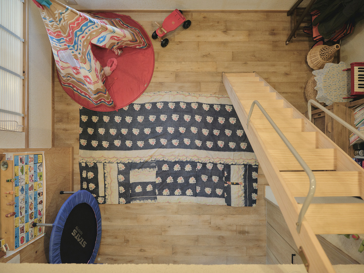 目前二楼的房间则通过一个楼梯相连,然后分为不同的屋子,孩子们都非常喜欢,感觉每天像忍者一样既私密,但同时又能满足他们好动的习性。