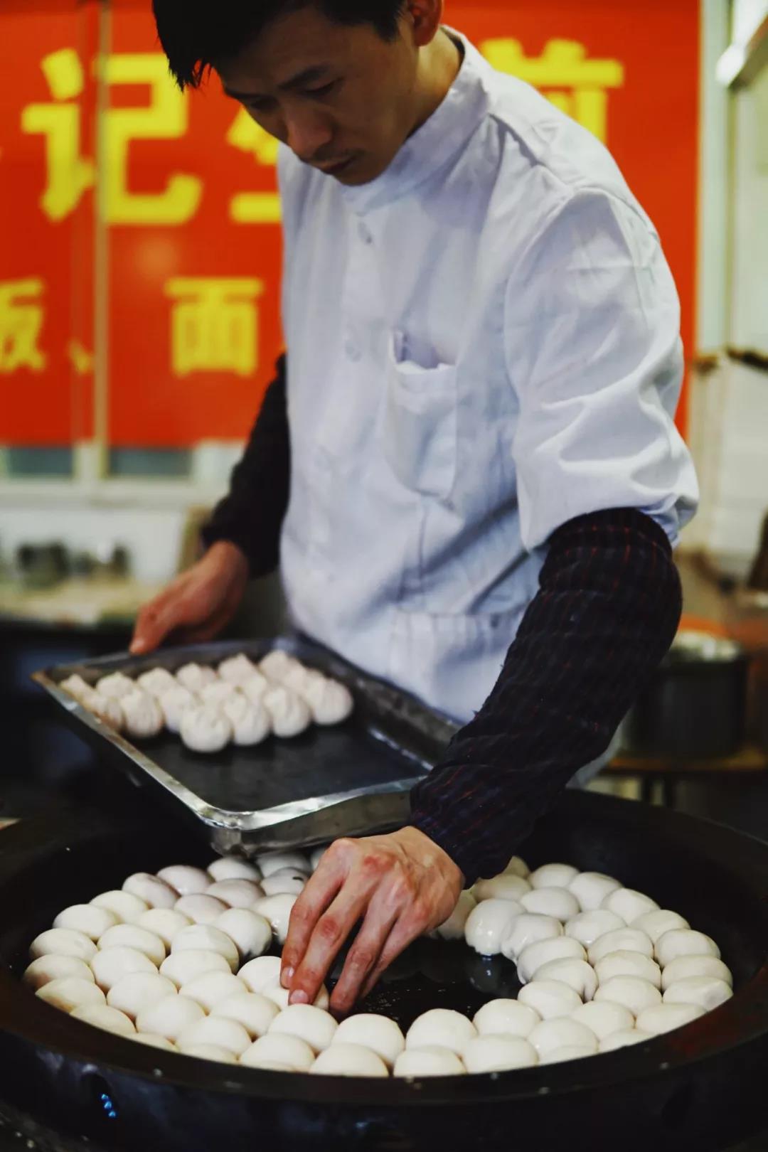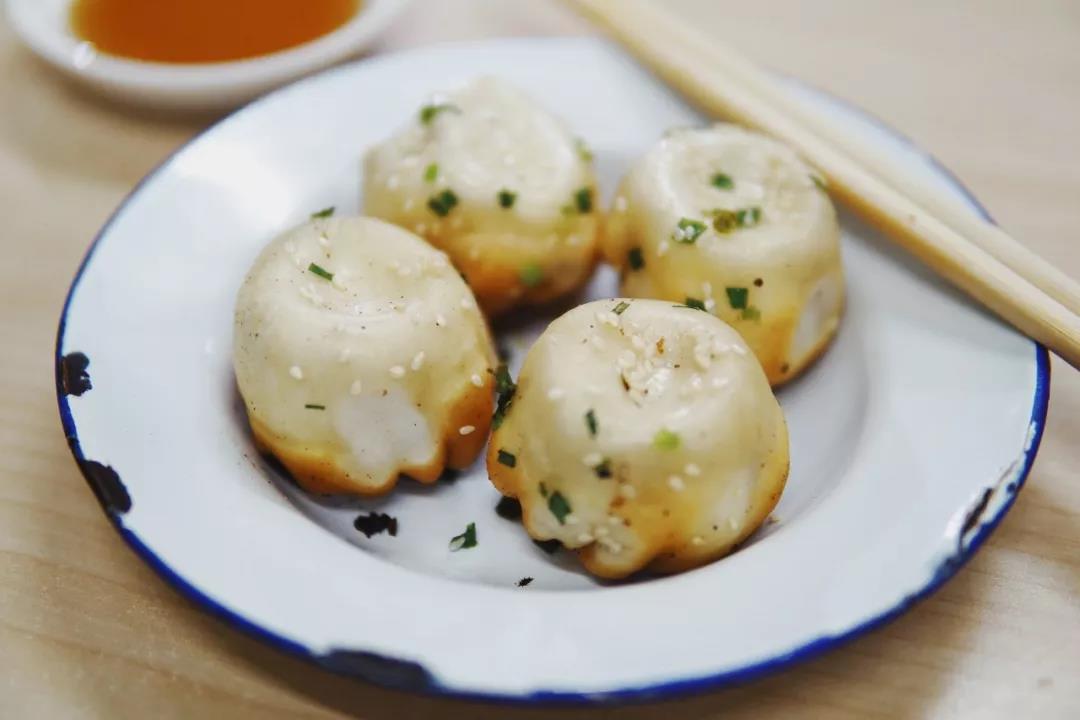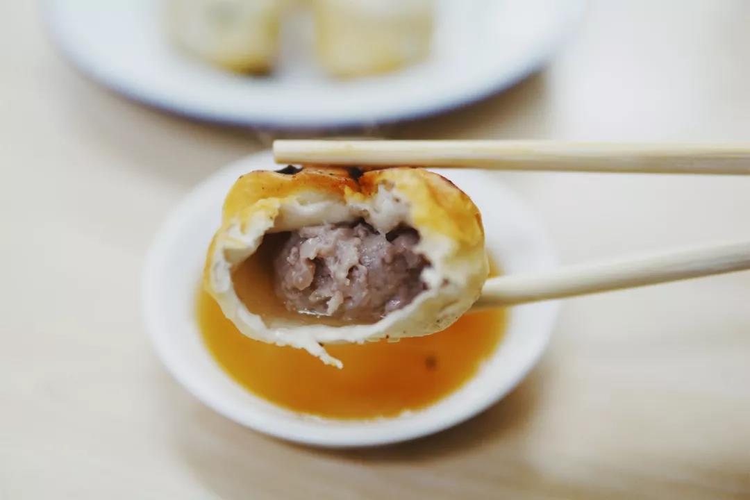 吃过清水派,混水派的一代宗师就是舒蔡记了。店里只卖一种生煎,半发面个头更小,鲜肉馅儿加肉冻,褶子向下入锅,皮薄底脆,先咬开一个小口,溢出汤汁,再蘸着米醋吃。外加一碟菜饭一碗牛肉汤,一共才20来块,已经算是异常豪华的早餐配置。