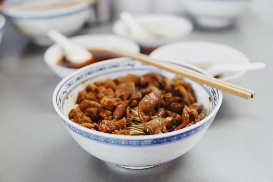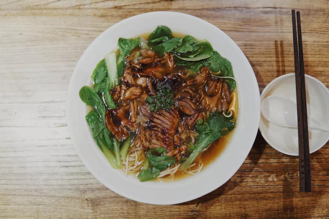 开业三十多年,老面馆经过包装升级,来的依然是老食客,号称“海上第一肠”,但我却更偏爱他家的腰花面。现炒的腰花浇头,厚薄均匀不僵不骚,浓油赤酱的汤头,一把绿油油的青菜,最后再撒一把的白胡椒,提味增鲜去腥,一切恰到好处,一大碗下肚美滋滋暖呼呼。