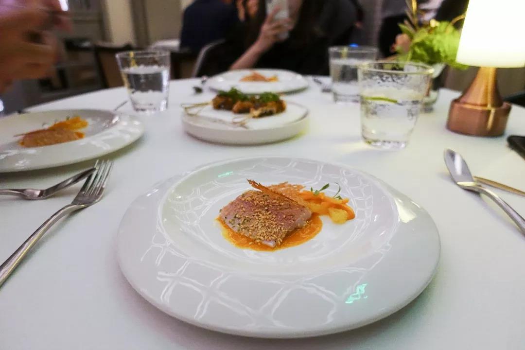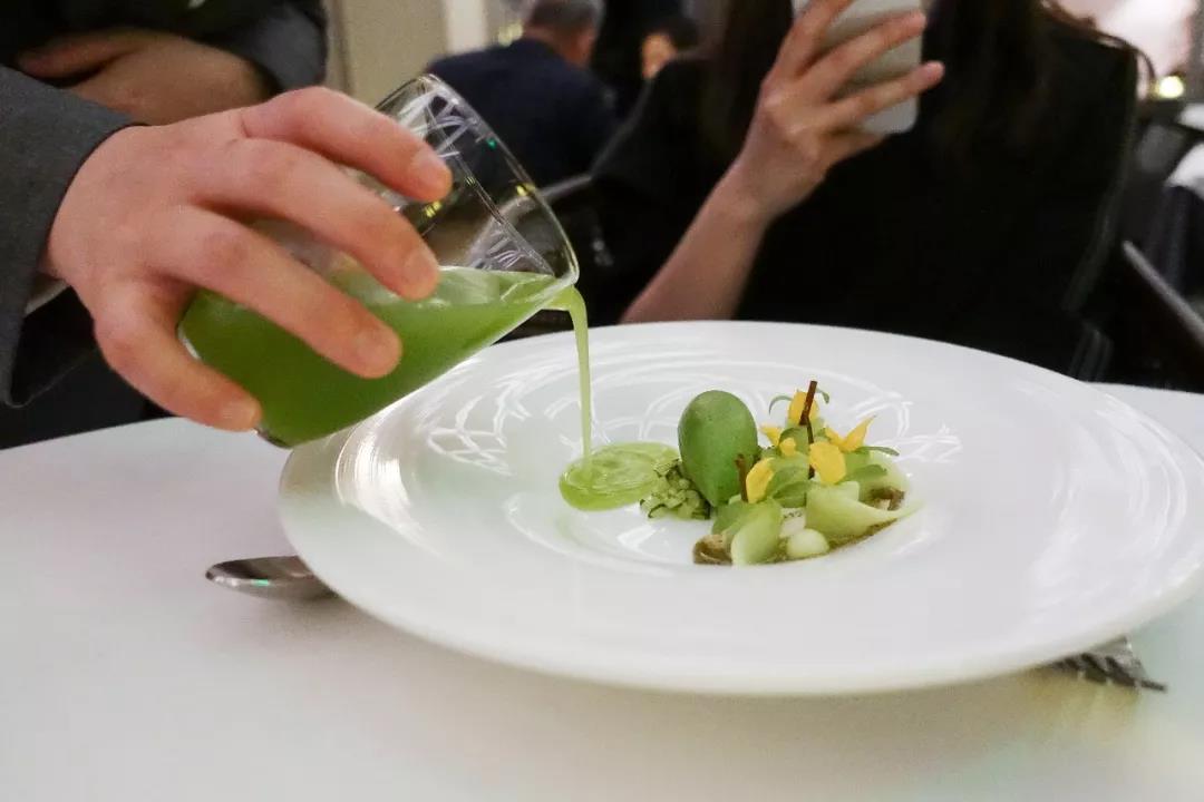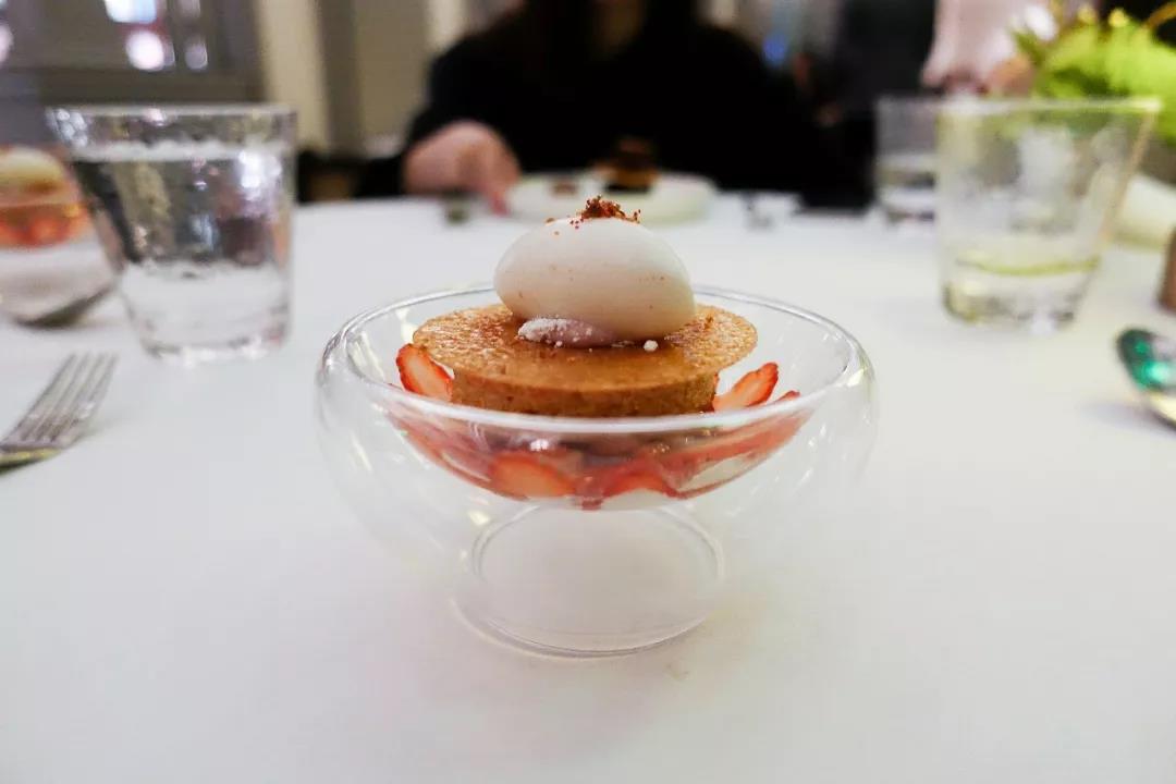 主厨 Johnston 是新加坡华裔,餐前出来打招呼,害羞说自己中文不好,可以讲英文。来上海之前,他在米其林二星 Odette 团队担任 sous chef,我说我去过 Odette 啊,是我去年最喜欢的餐厅了!