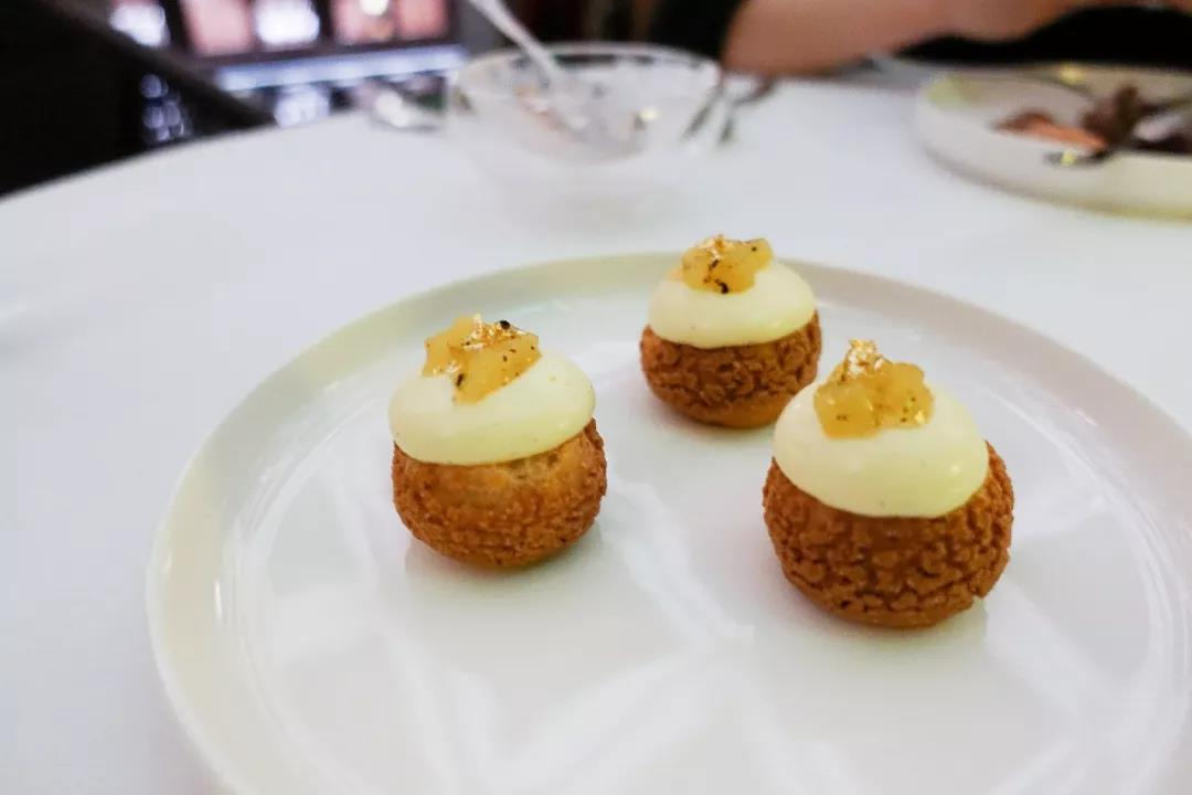 饭后送的小泡芙,酥皮很脆挺好吃。我们三个人,买单一共¥2400多,没喝酒,也不加收服务费。