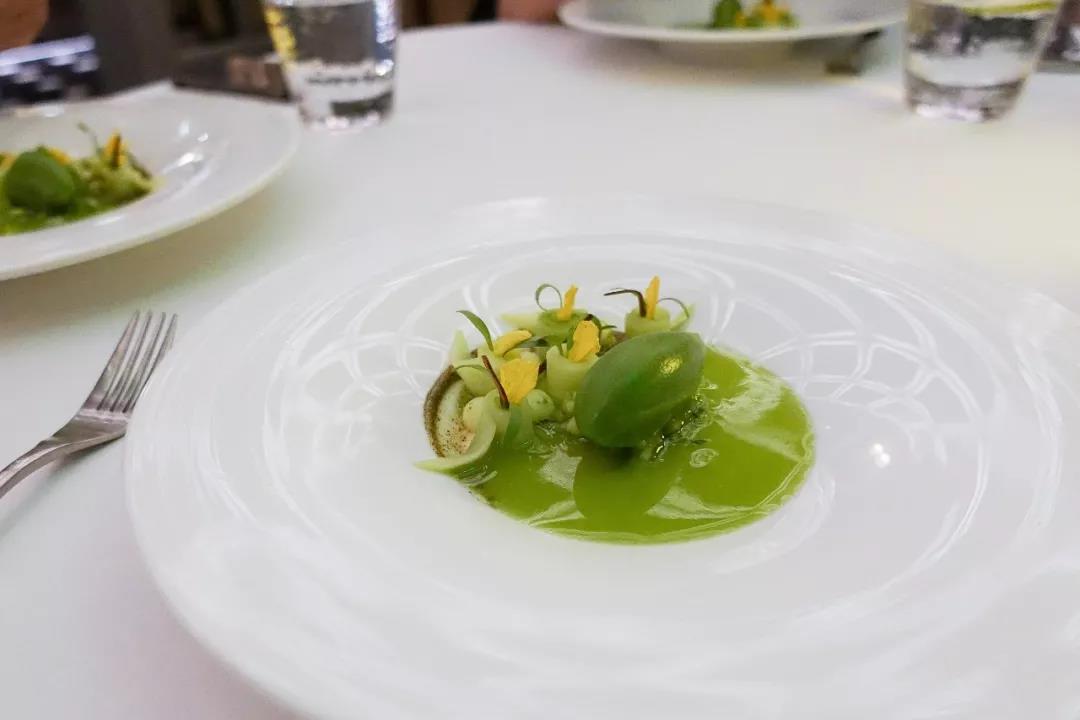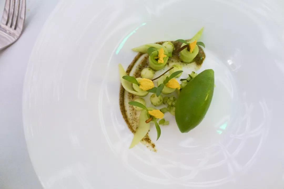 另外配了些青苹果,盘边还有一抹海藻泥,极简的元素,酸咸甜鲜配合得恰到好处连接上下半场的过渡菜,口中清凉舒服。