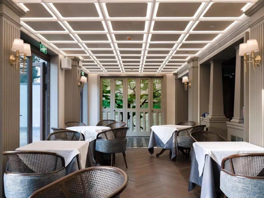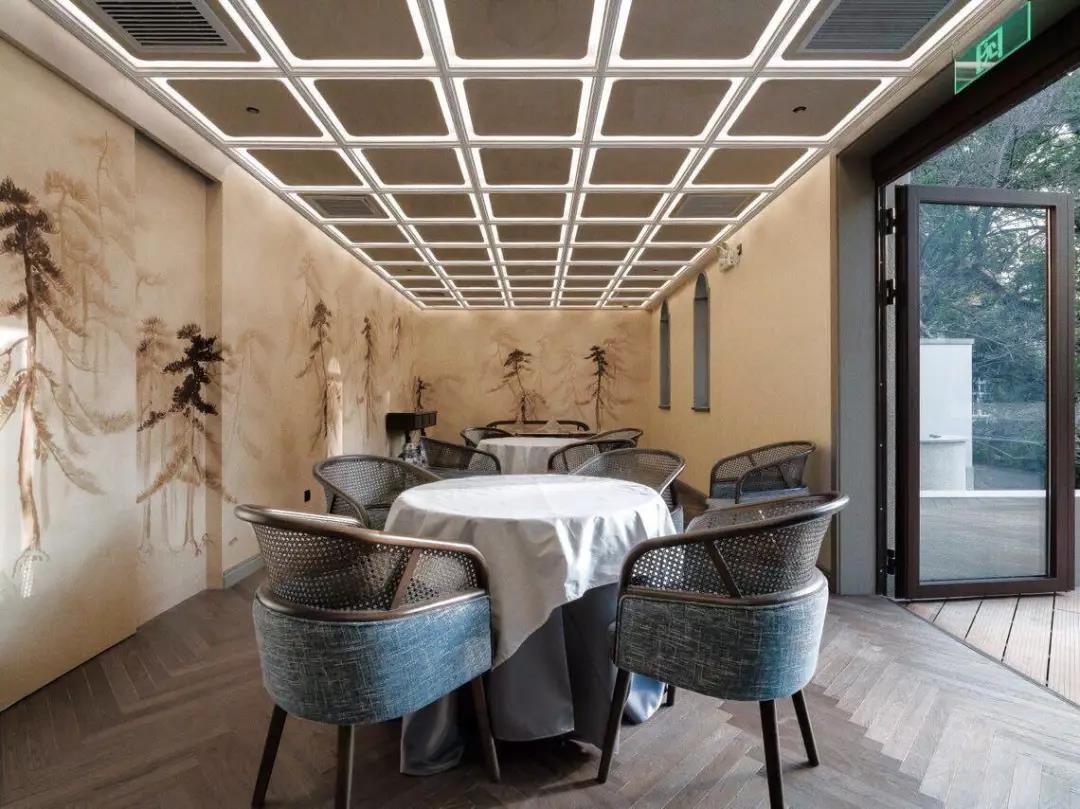 The Pine藏在瑞金路上的瑞金酒店里,池边一栋独立小楼,大概也就 30 个位子。看这个曲径通幽、餐松啖柏的设计风格,以为是吃那种养生中餐,还好,并不是。