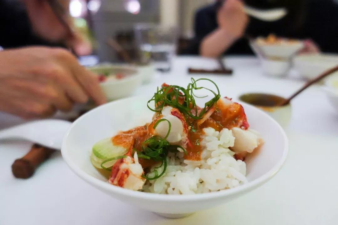 米饭是加虾汤煮的,黏黏的米粒自带鲜甜,吃的时候加码满满龙虾肉,再浇上浓鲜的XO虾酱,变成一碗骄奢的盖浇饭!超级好吃,扒大米饭的幸福感真实而强烈。