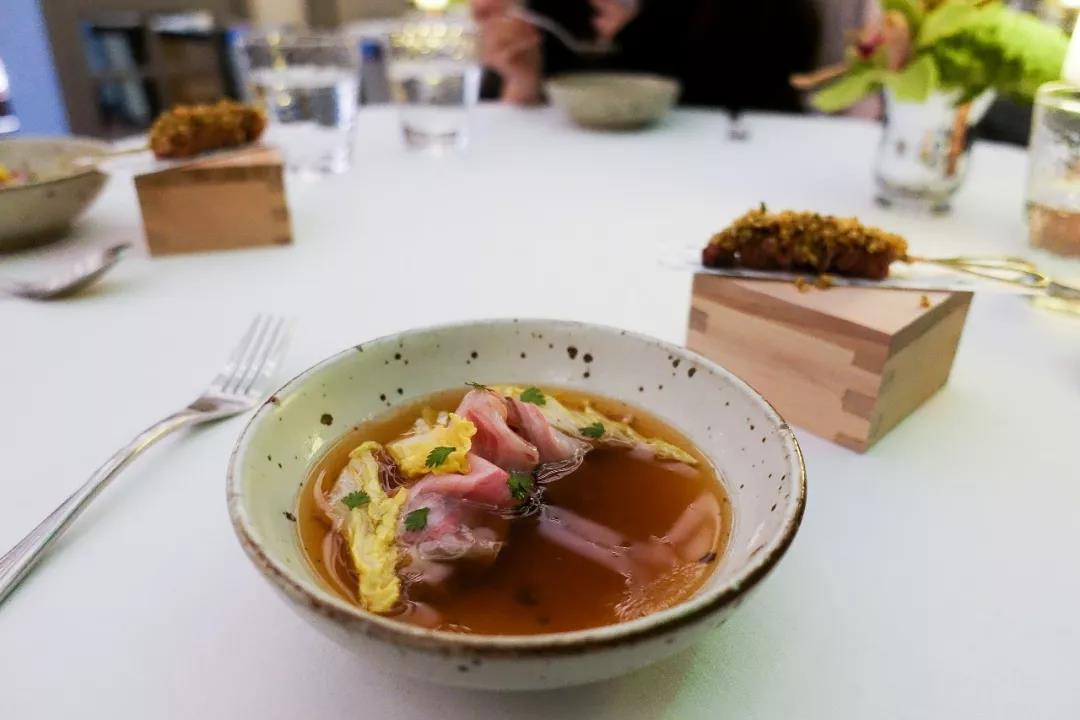 伊比利亚猪肉薄切,浇上金华火腿高汤,在一碗中融合世界上最爱吃猪猪的两个国家。可味道没啥惊喜,普通的例汤。