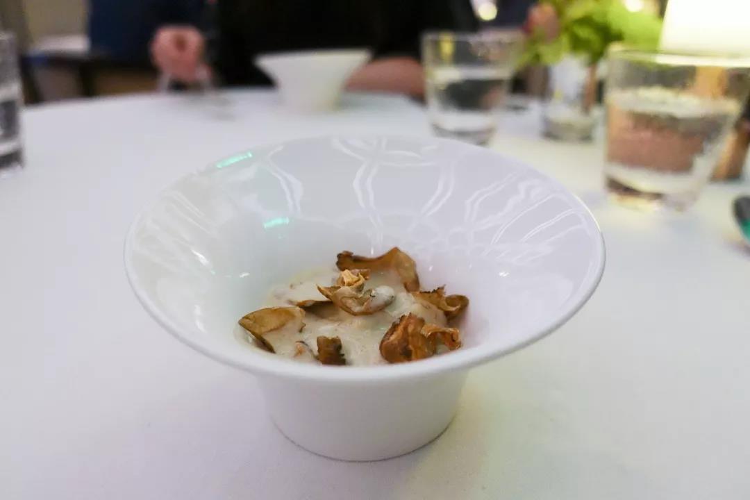 脆嫩的蛏子肉,洋姜分别做成慕斯和脆片,以黑松露作后调,整体是温暖柔和的味道。你看 TRB 也做差不多的一道菜,但这个的层次感和美味度不知道高到哪里去。