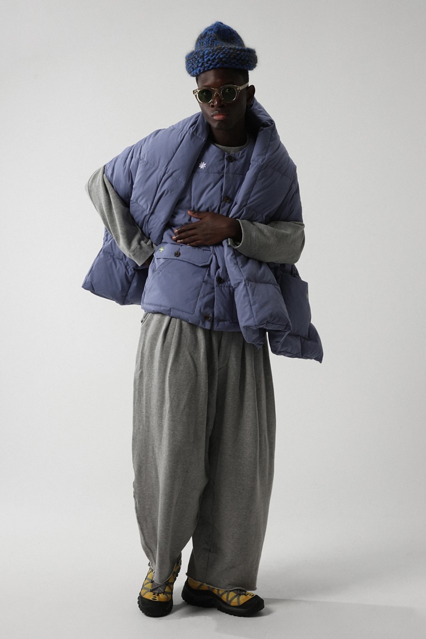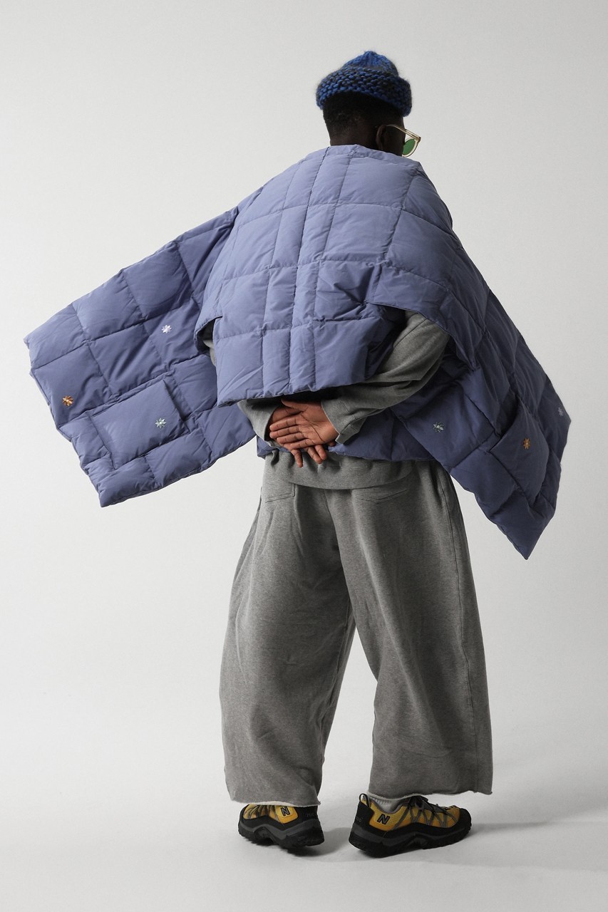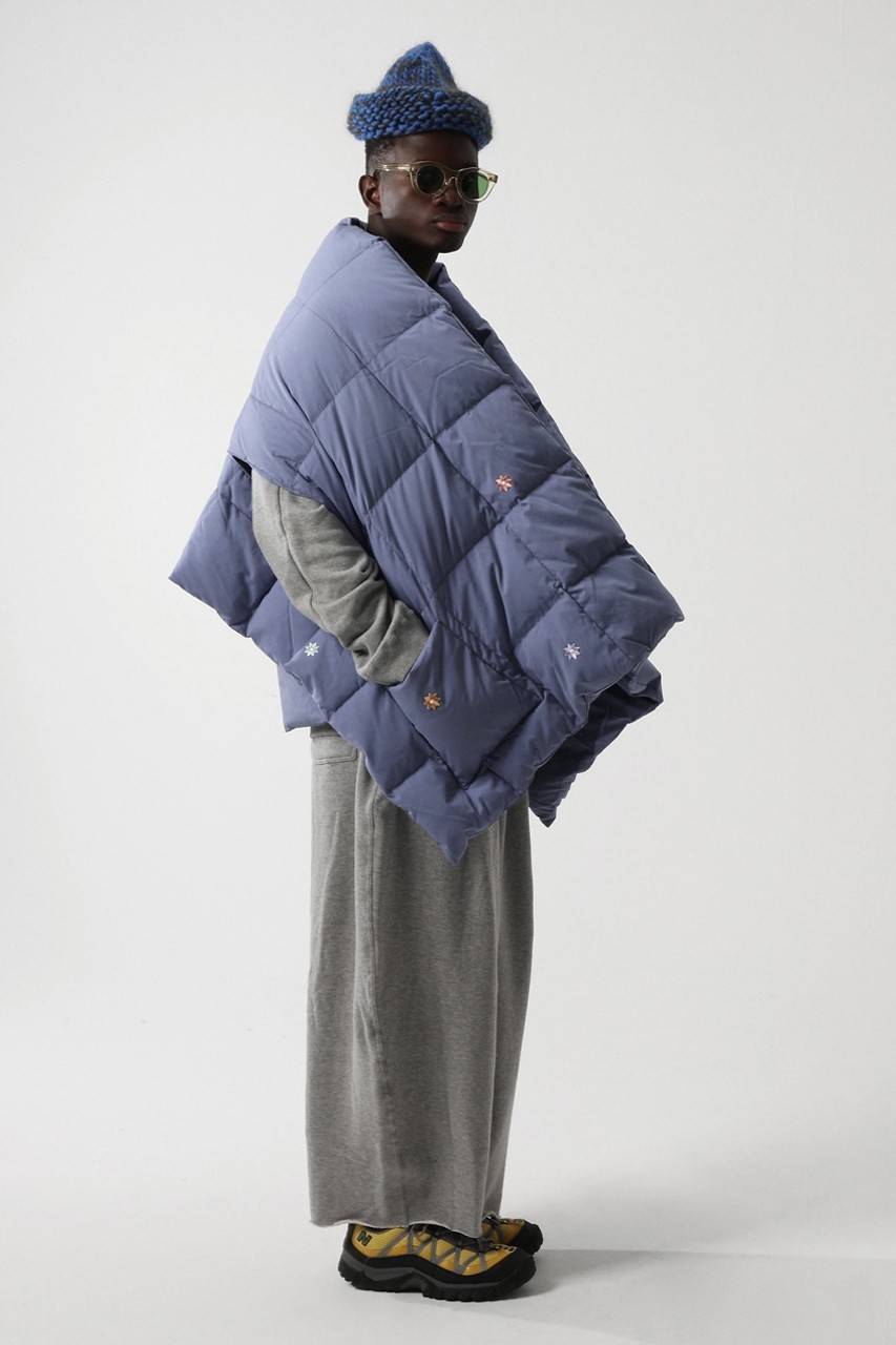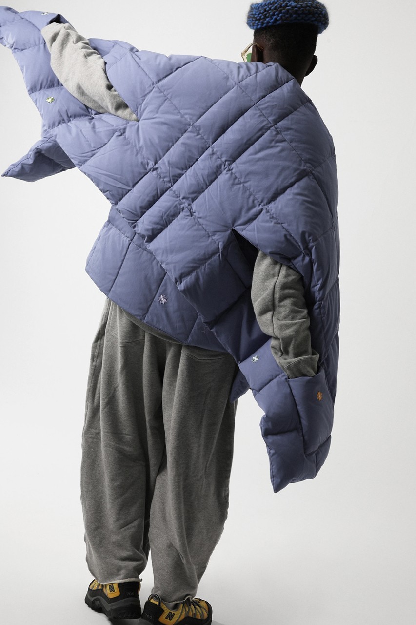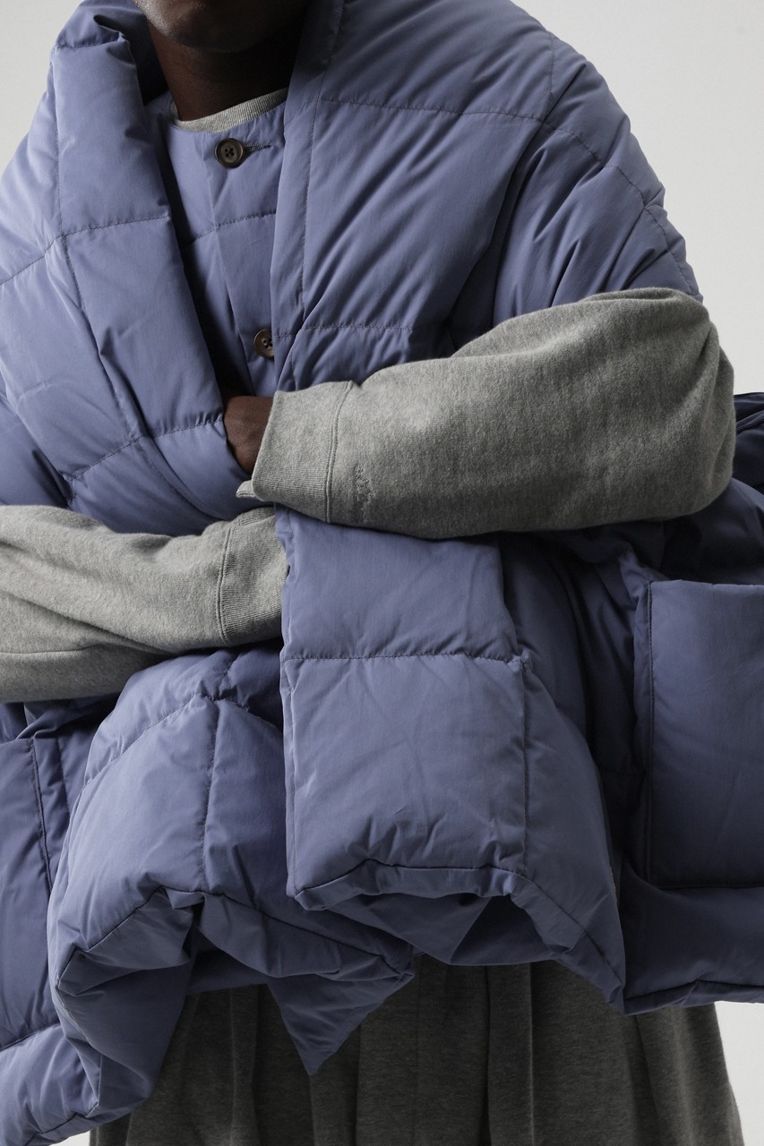 该系列有粉蓝色、海军蓝和橄榄色可选,整个系列完全采用可回收的 Link Down,搭配百搭背心、开襟羊毛衫、紧身夹克和冬季外套,以及一个不太大的围巾让整体的穿搭更加舒适。另一件可能是该系列中的佼佼者,因为尺寸更大一点的围巾充当了覆盖在穿着者身上的另类毯子,既能保持颈部和肩部温暖又不会感觉到闷热。