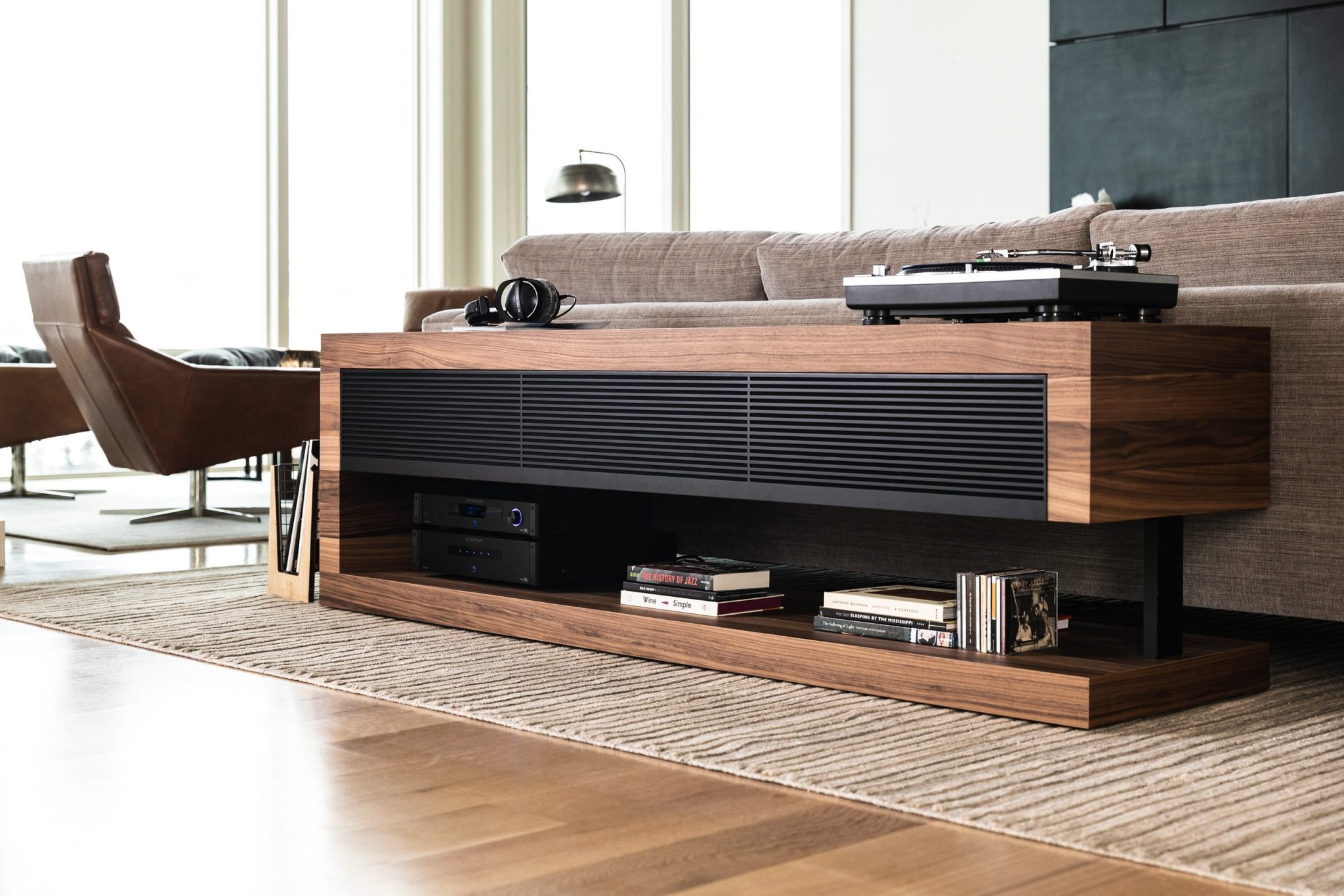 在我看来这款音响不是最大的卖点,而是和电视柜结合在一起既美观又实用,一举两得。不过看似是省去了其中一个物件,但是售价也不便宜,高达6995美元。不过拥有大房子的你,不会为这件事做太多的犹豫,喜欢就安排上好了。