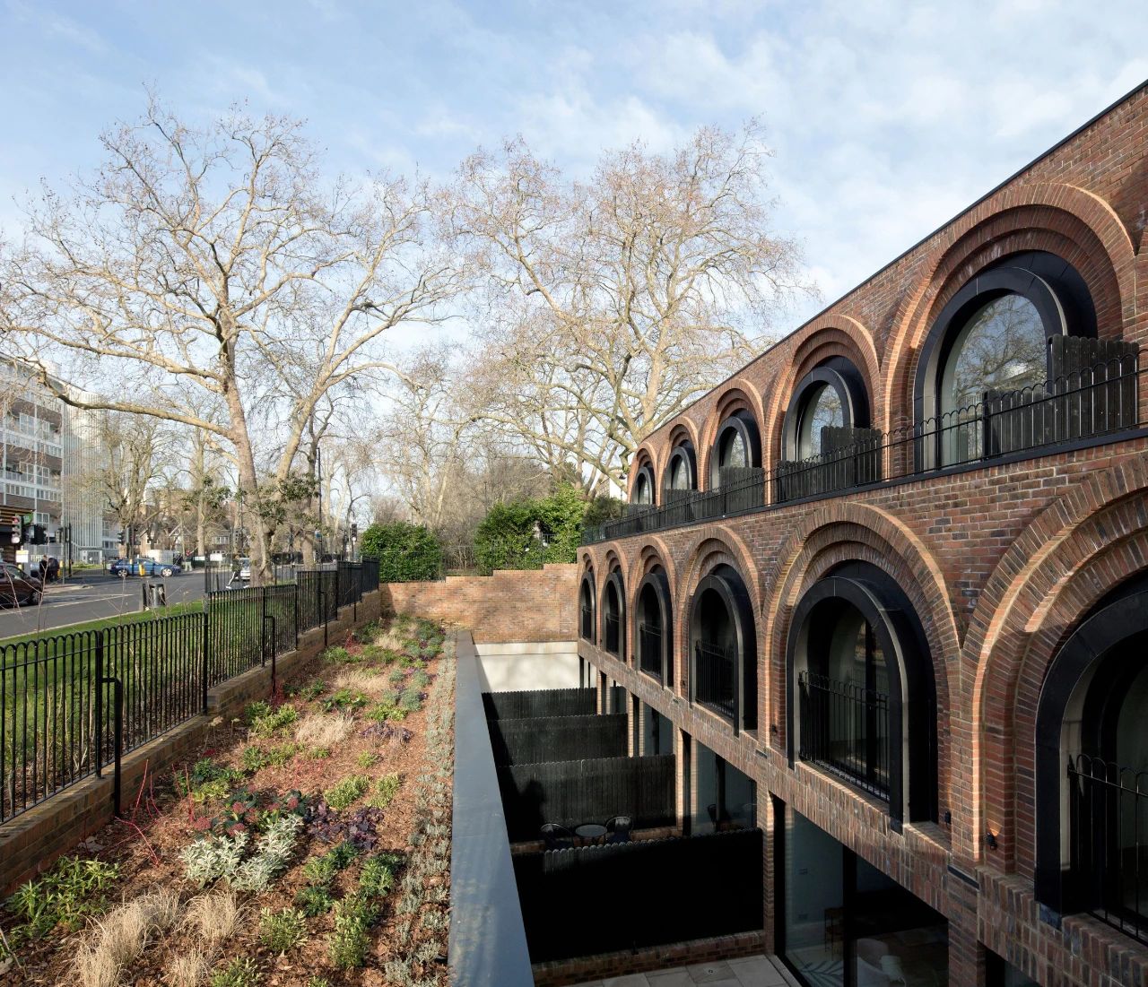 设计团队充分调研了周围的建筑风格,研究了英国新古典主义建筑的演变,发现这种模仿了古典威尼斯人的矩形和拱形混合的建筑在这个地区很常见。