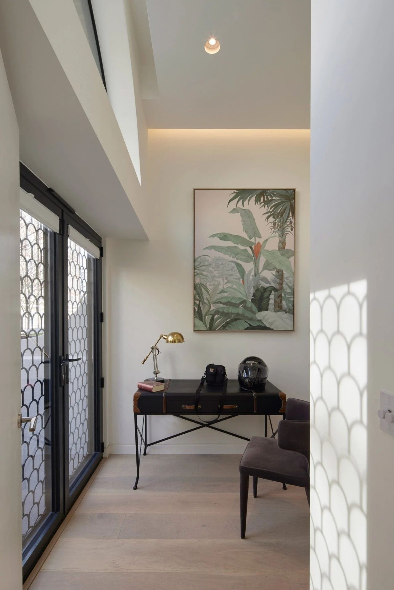 门口的铁门也延续了复杂的拱形设计▽