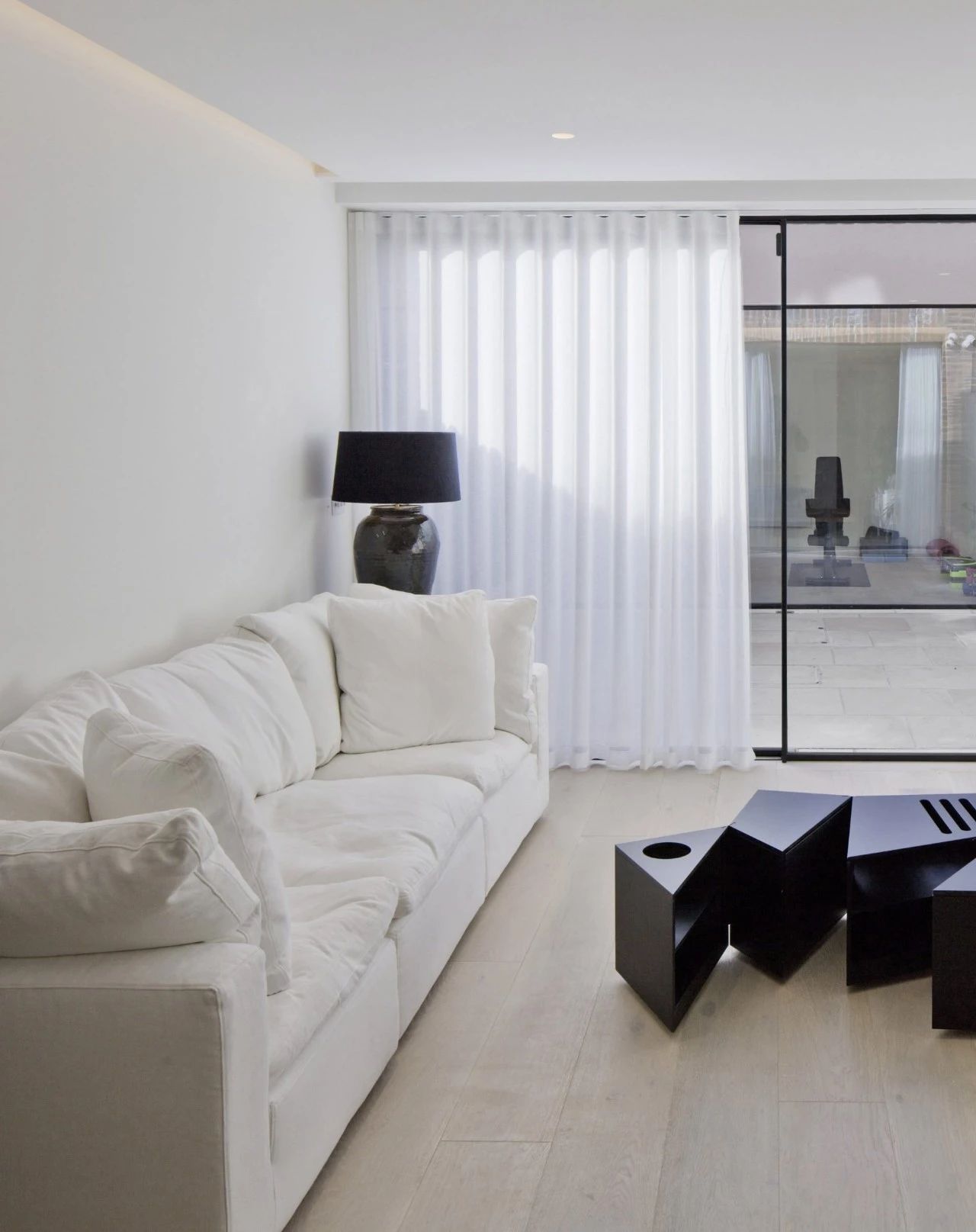 地下一层包括一个开放式的起居室和厨房空间,并通向下沉的后花园。