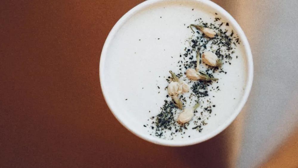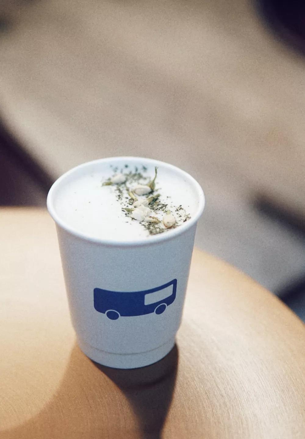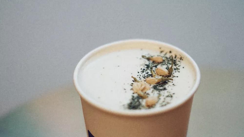 其实菜单上更吸引我的是醪糟碧潭飘雪,可惜去的时候刚好没有,就选了这杯碧潭飘雪。碧潭飘雪是产自四川的经典花茶,这家店以茶拿铁的形式来呈现,是一款不含咖啡的饮品,能闻到碧潭飘雪的花香,也是将成都的茶文化与现代饮品结合,正式营业后会更换盖碗杯作为容器,肯定非常的酷。