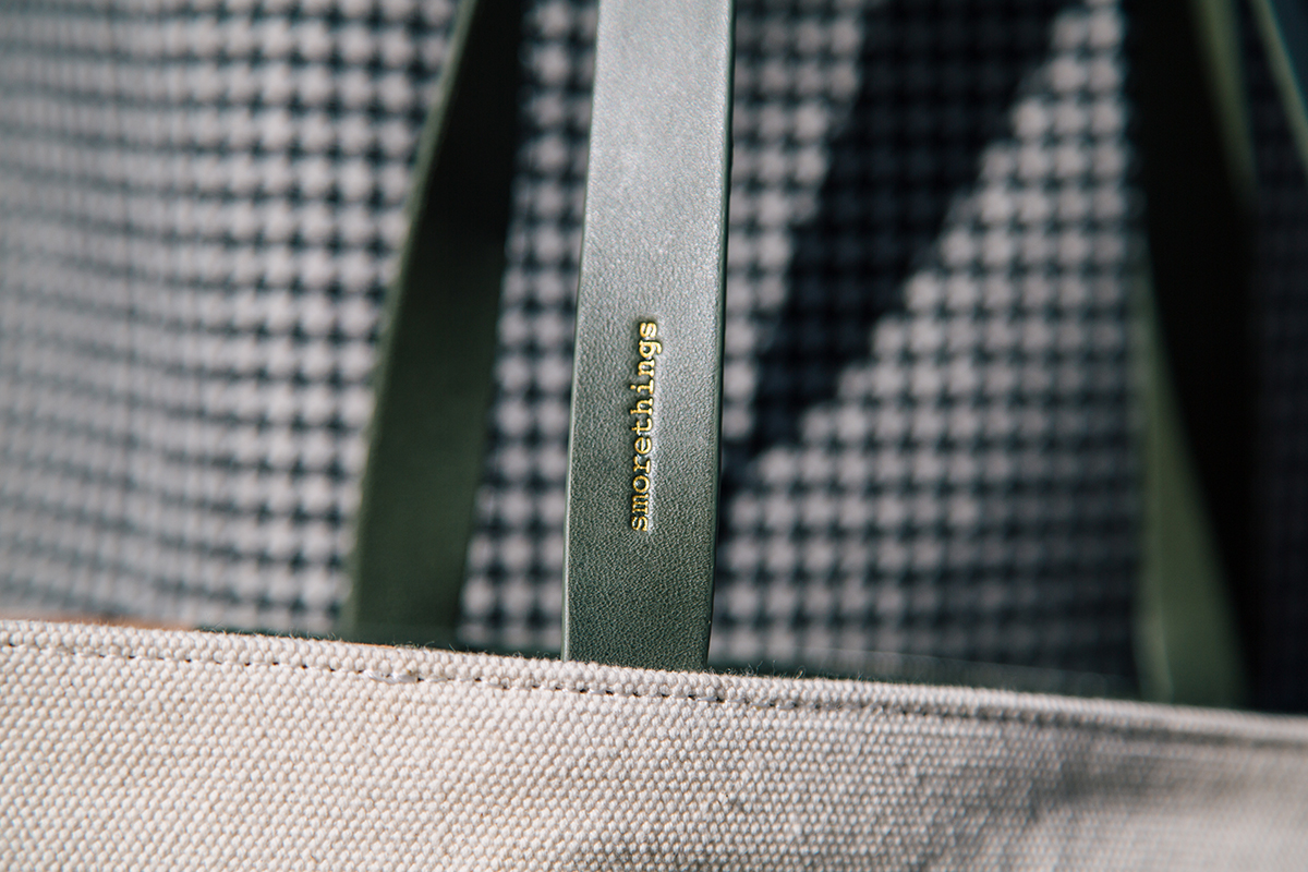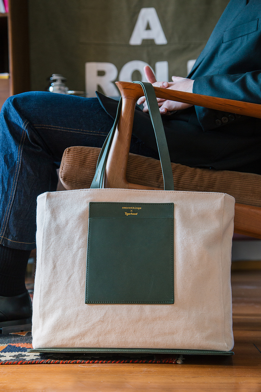 王捷:本次与 Tigerhood 的联名,smorethings 尝试寻找最简洁的日常生活与传统精神结合的方式。托特包与最简化的帆布袋中间有一个需求,就是「不太正式」的「正式感」。