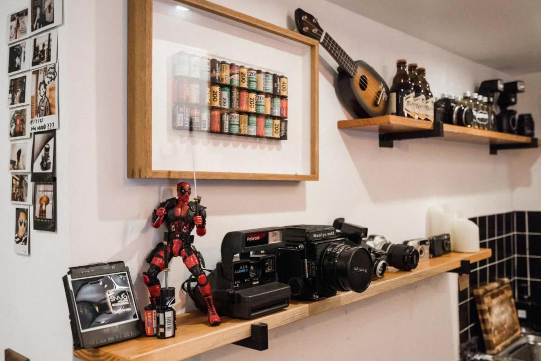 店内的相机、胶卷和照片都忠实地传递着店和店主的个性。听咖啡师 amiu 介绍,这里所有的设备(包括固定在墙上的那个棕色行李箱)都是店主边边的收藏。从这个角度来说,走进 SNUG 或许也是一种去热爱摄影的朋友家做客的体验吧。