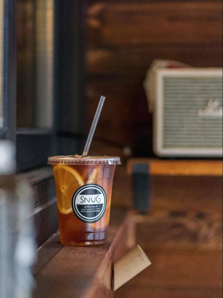 以不怎么会商用的福云红茶做基地的柠檬茶,也是 SNUG 无咖啡招牌饮料之一。amiu 告诉我,有很多客人喝了它就不想再喝咖啡——我一开始不以为意,结果也「真香」了(笑),是非常清爽、能实实在在被称作柠檬茶的一杯。饮用建议是让吸管穿过柠檬,再充分地进行搅拌,不然可能会觉得偏甜。