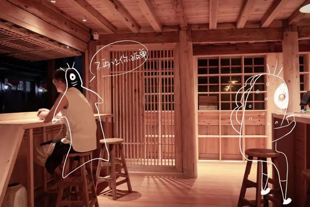 也有从城市回来的年轻人,更喜欢夜间的無名营造社,灯光透过栅格,暖黄温润,调酒师变幻出一杯有层次的鸡尾酒。po在社交媒体上时,人们在底下留言:哇,好日式啊!