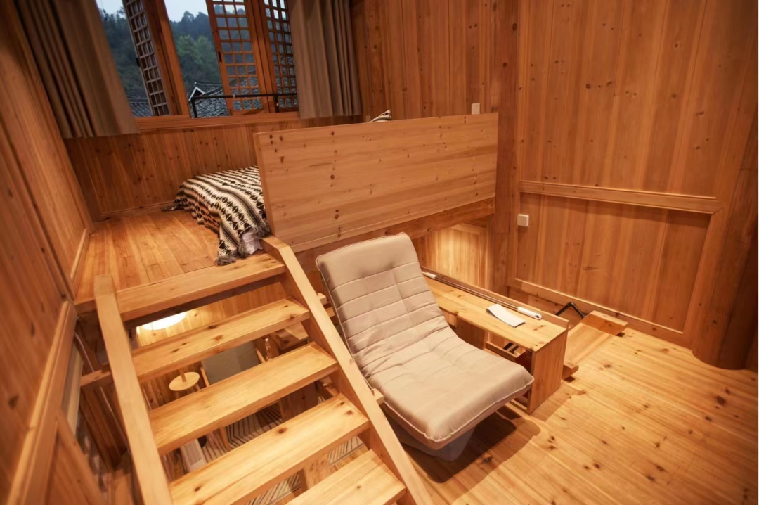 起初不被理解的是故意制造出来的障碍——二楼青年公寓进去就一张床,有一个很高的门槛,门和放粮食的粮仓一样低矮。