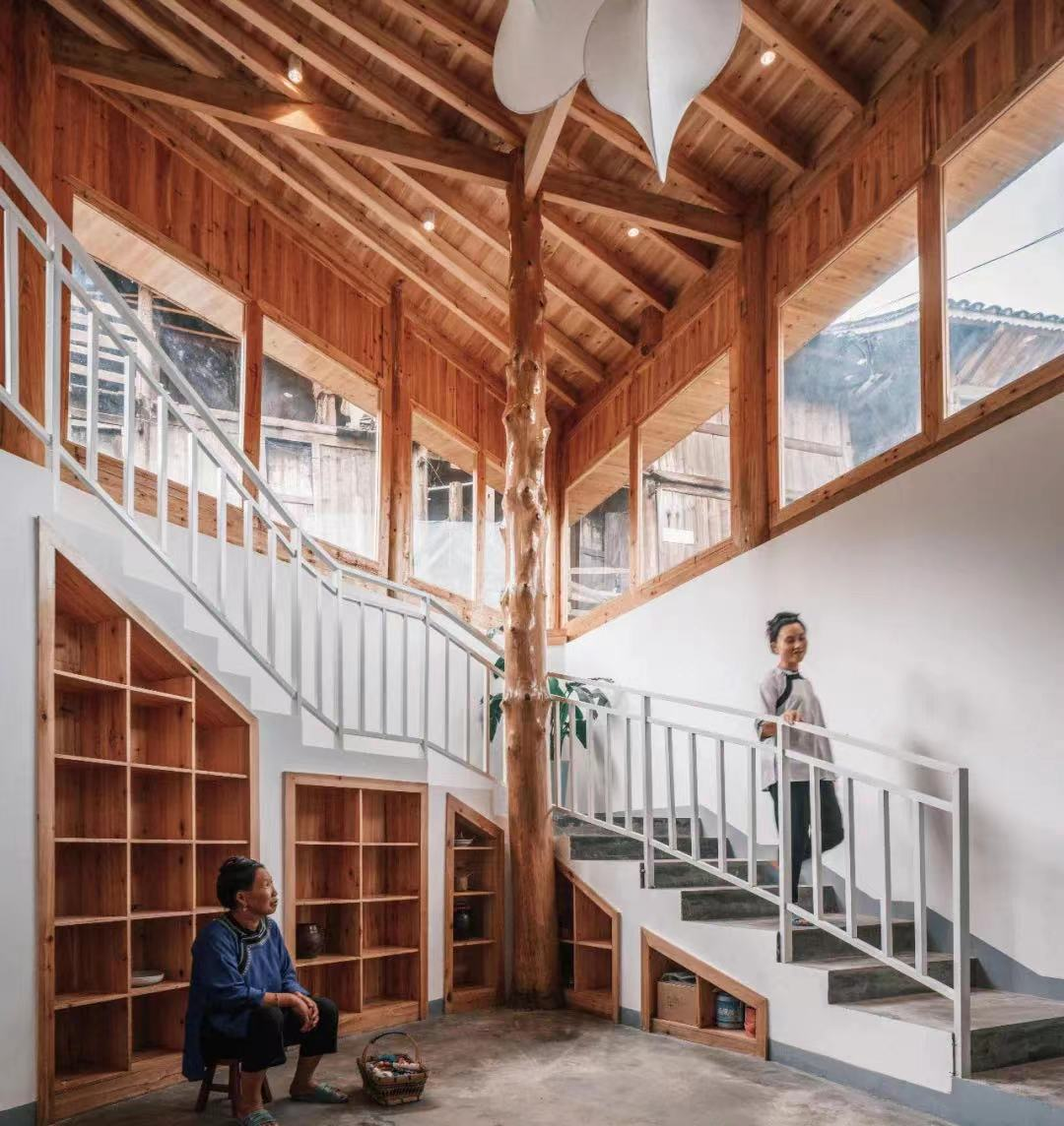 黄岗村的创客中心沿用的是“粮仓”这种当地附属建筑,通过提炼,粮仓变成了青年人交流、办公、住宿的多元空间。
