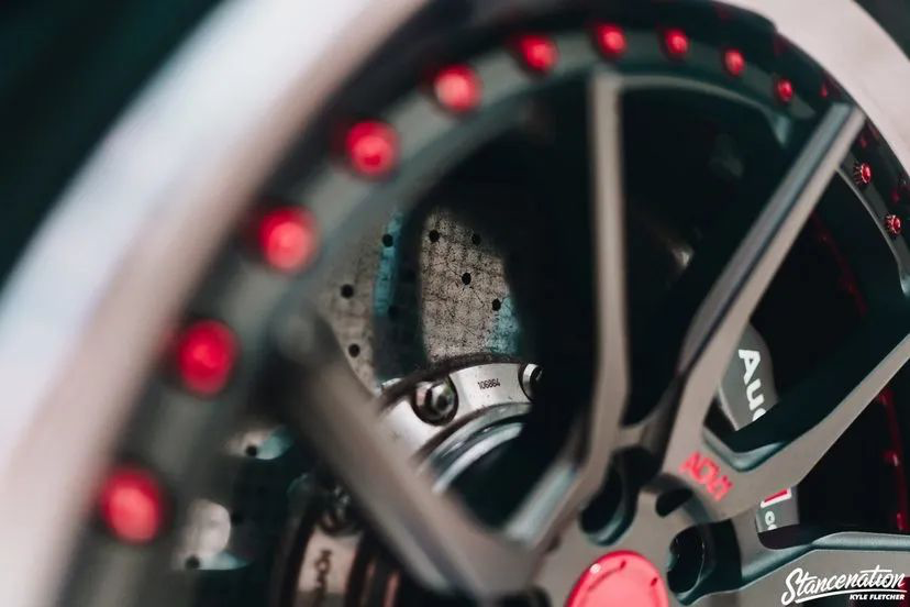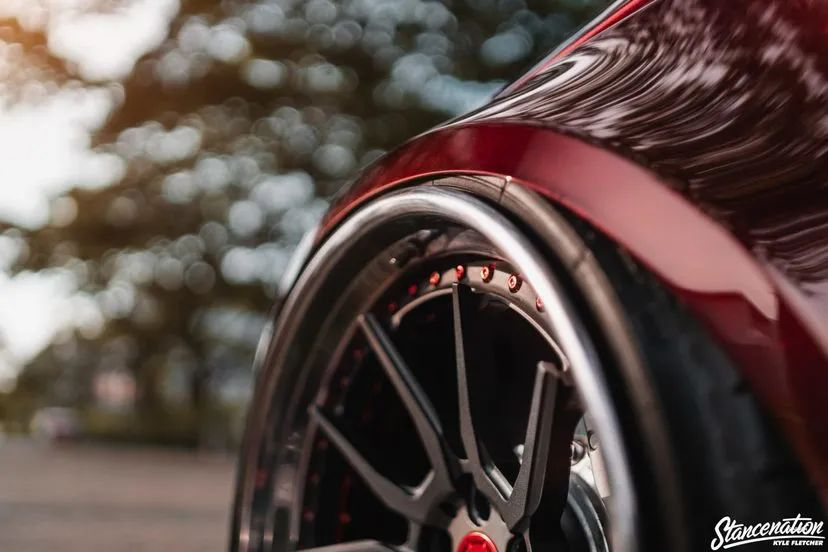 为了让ACCUAIR气动避震降低后的车身姿态不那么普通,车主选择了定制宽体包围搭配一套定制的大数据轮毂,视觉效果相当出众。