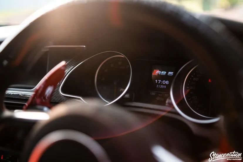 为了匹配更换发动机之后获取数据的同步,车主没有选择外接的赛车仪表,而是依旧移植来自RS5的仪表盘,这应该叫「表里如一」吧。