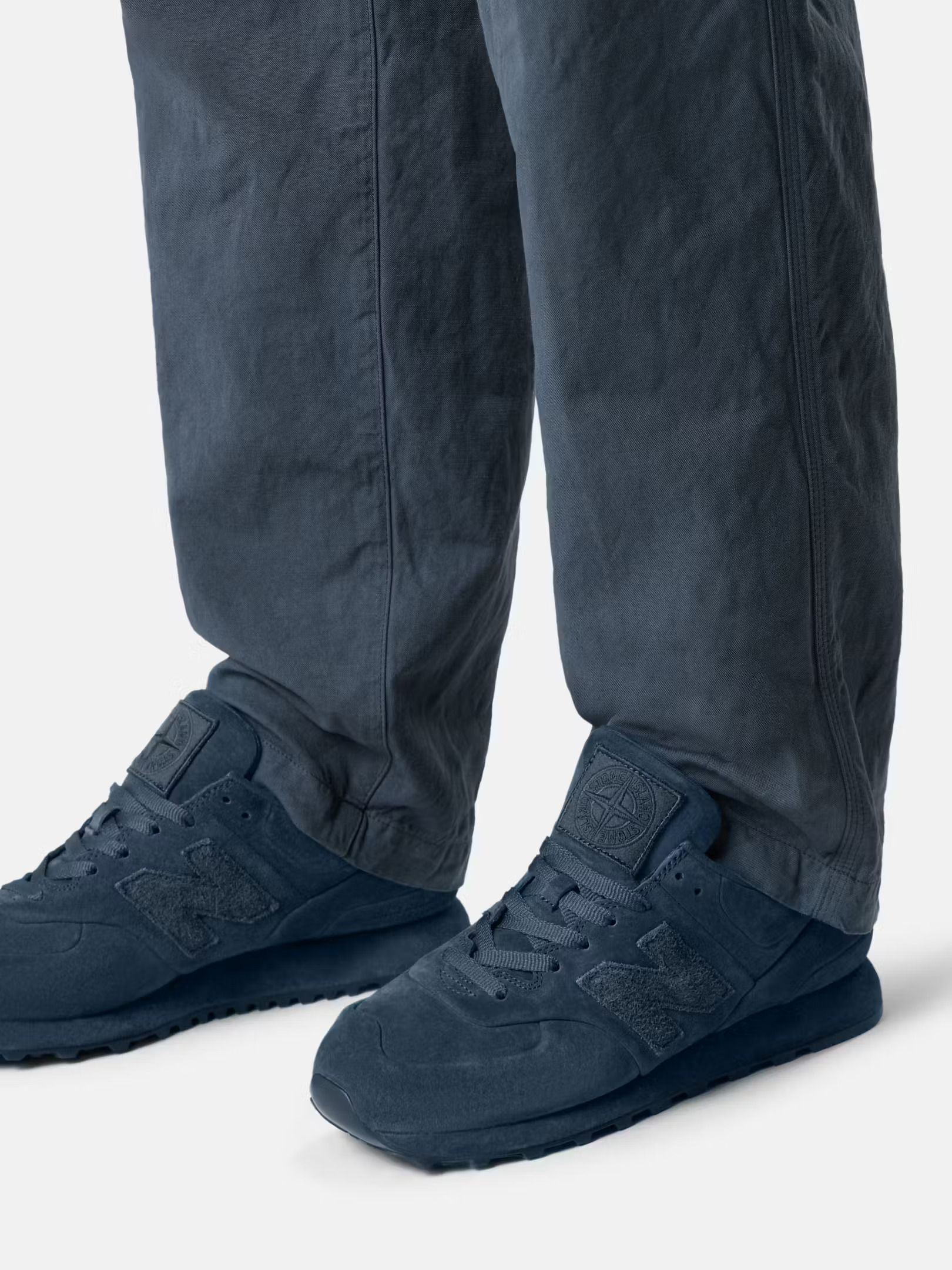 如此设置意味着,除了鞋带和鞋舌上醒目的同色系 Stone Island 毡布贴片外,球鞋上几乎所有部件都由同一种材质构成。鞋底的橡胶略微凸起,但丝毫不影响柔软舒适的穿着体验。是的,它看起来就像鞋履界的天鹅绒枕头。全新 Stone Island Ghost x New Balance 574 的美学概念完全符合 Ghost 的品牌理念。作为 Stone Island 高端系列,Ghost 专注于打造单一色调的产品,譬如将主线品牌的技术夹克和高端针织衫染成单一的军装风色调,就连 Stone Island 的标志性徽章也未能幸免,当然,Ghost 自身系列同样采用了单色设计。