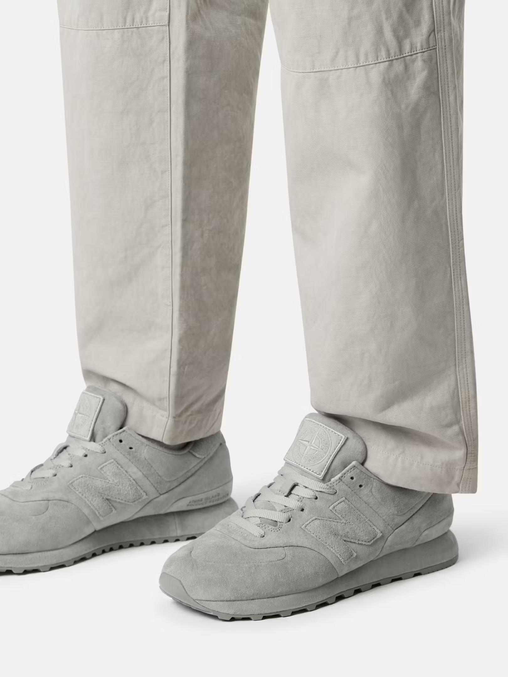 其实延续单色风格的 Stone Island Ghost x New Balance 574 让人觉得似曾相识,那是因为 Stone Island 曾在去年九月就推出过一批应用柔软单色麂皮制作的 New Balance 574 。现在,它们再次回归。全新联名款 574 预计将于 3 月 11 日通过 Stone Island 官网发售,与 2026 春夏 Ghost 系列一致,其配色包含沙米色、石板蓝和灰褐色。