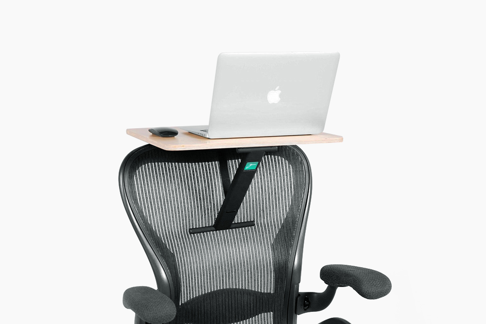 然而,在站立式桌子价格并不便宜的前提下,依然有聪明的替代选择,诸如这款 Storkstand Portable Standing Desk + Lap Desk 。这款站立式办公桌通过钩在椅子前部的独特支架以及重力与自身重量来进行固定,作为模块化的办公家具,Storkstand 采用由森林管理委员会认证的天然木材制成,配以铝制硬件,可支撑多达 50 磅的重量。桌面可最大容纳 17 寸的笔记本电脑,同时仍为外部鼠标留出空间。Storkstand 可与市场上超过 90% 的现有办公椅兼容,在短短几秒内就能转换成站立式办公桌。