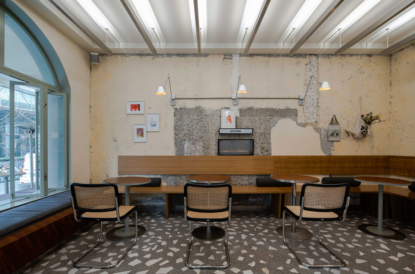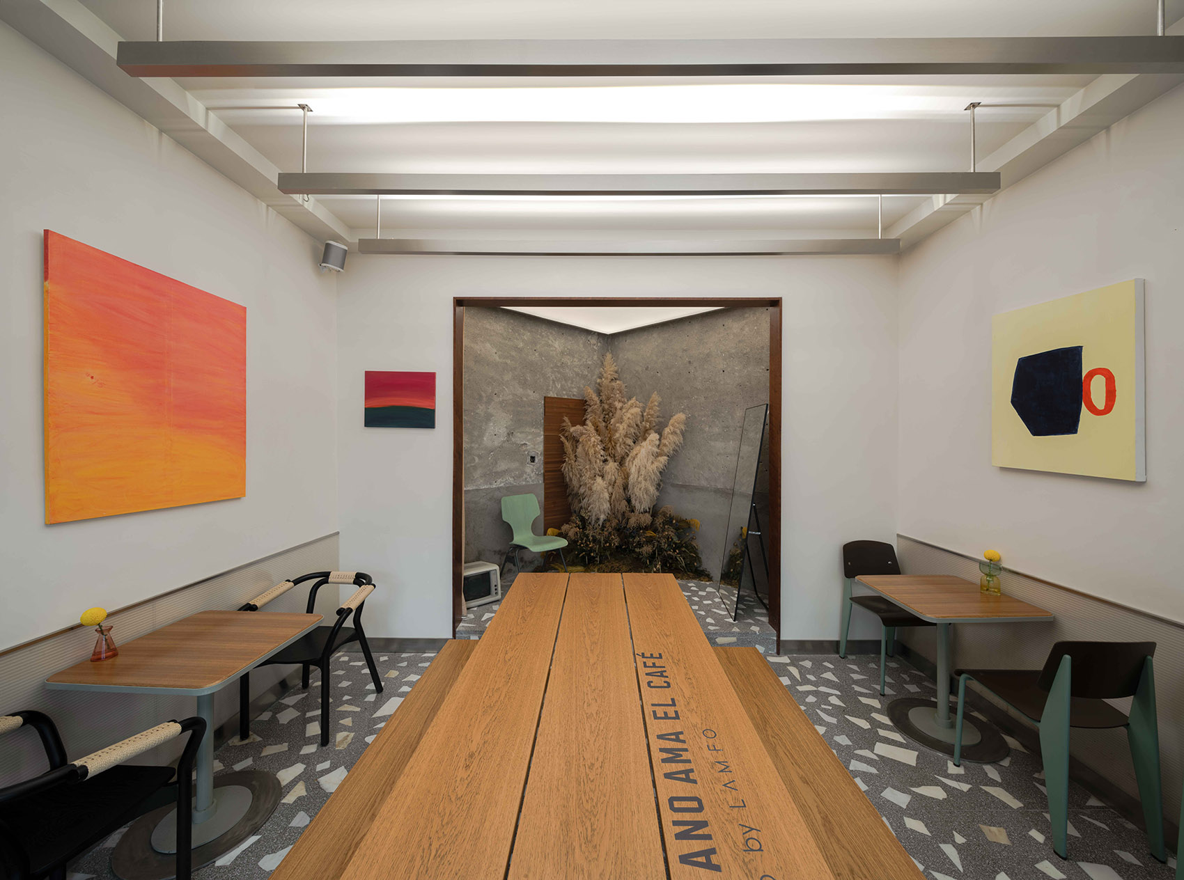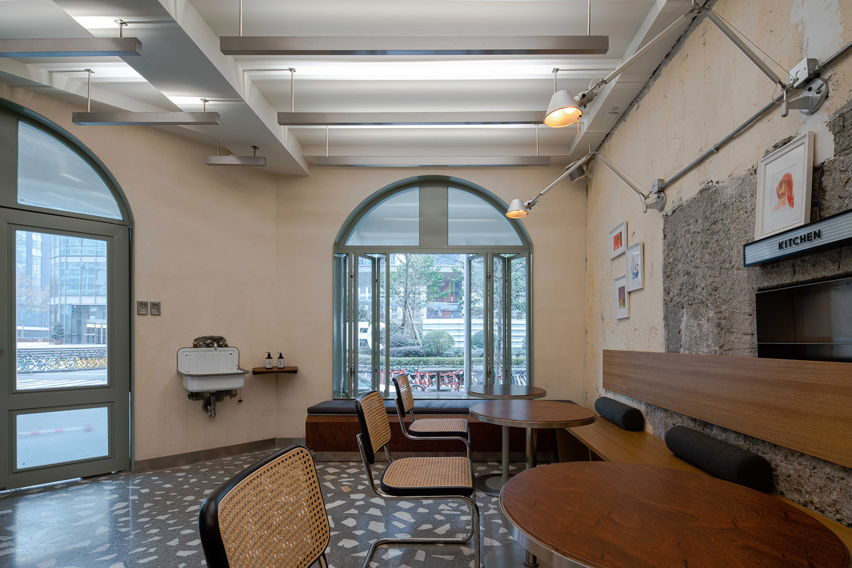 空间主材:水磨石、混凝土、铝材、肌理漆、白色乳胶漆