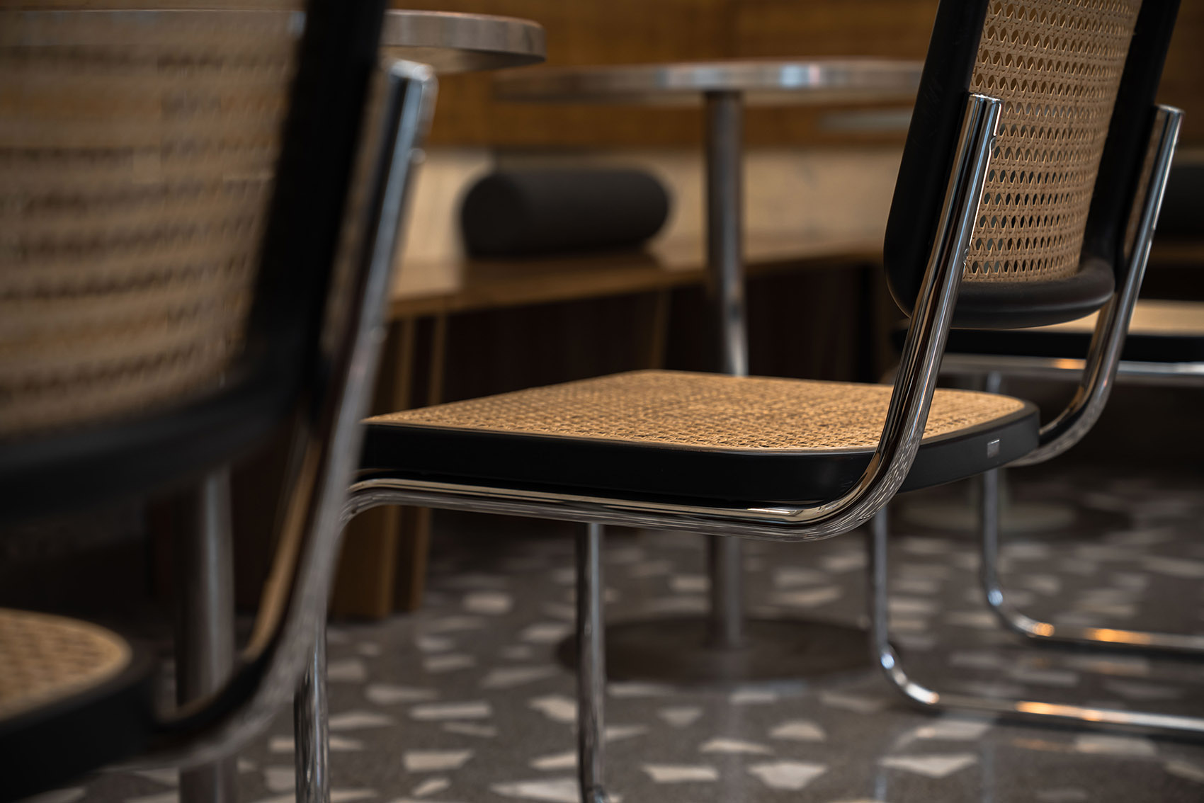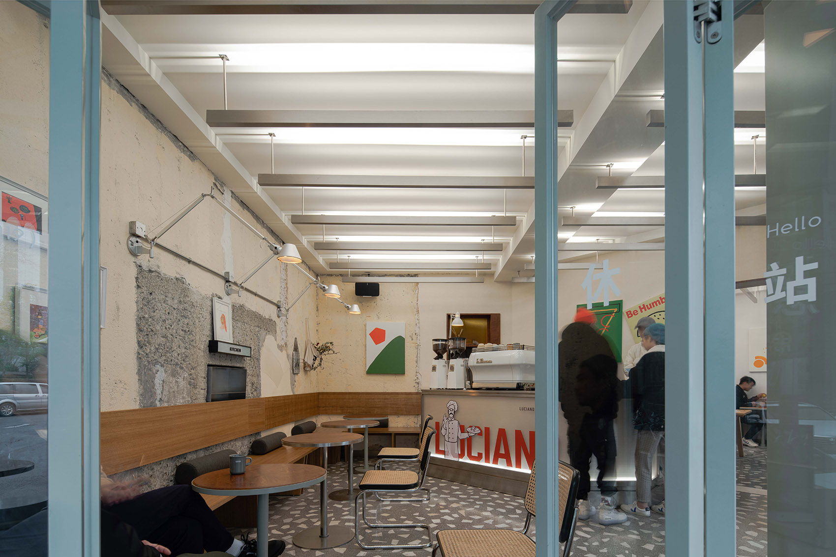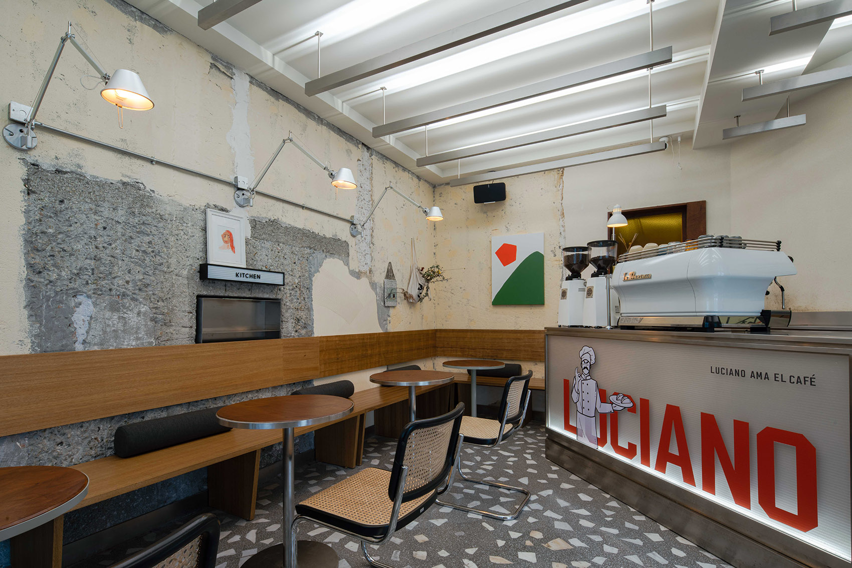 空间主材:水磨石、混凝土、铝材、肌理漆、白色乳胶漆