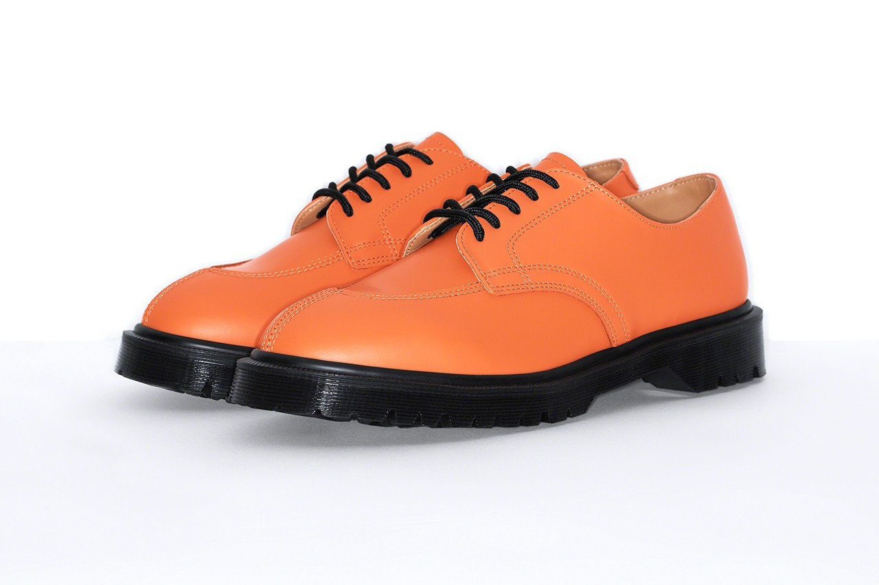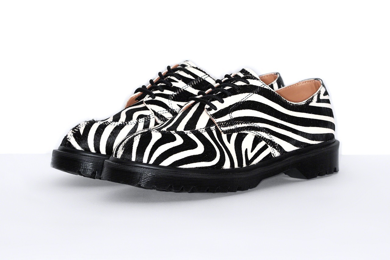 本次Supreme x Dr. Martens 2021 春夏联名系列以 5 孔版本作为设计载体,将英式经典时尚与美国原汁原味的街头文化进行融合,共计推出三款配色版本分别为斑马纹、纯橘色、纯黑色,在鞋面皮质选择中本次与经典款 1461 或 3989 更加光滑,斑马纹则选用了精致的马尾毛制成将街头文化中的狂野使用兽纹进行展现,本次也依旧遵循传统将经典纯黑款式也带入合作系列产品之中,鞋款均配备 AirWair 缓震气垫提供舒适的穿着体验,并在鞋垫处印有双方品牌Logo,彰显合作系列身份。