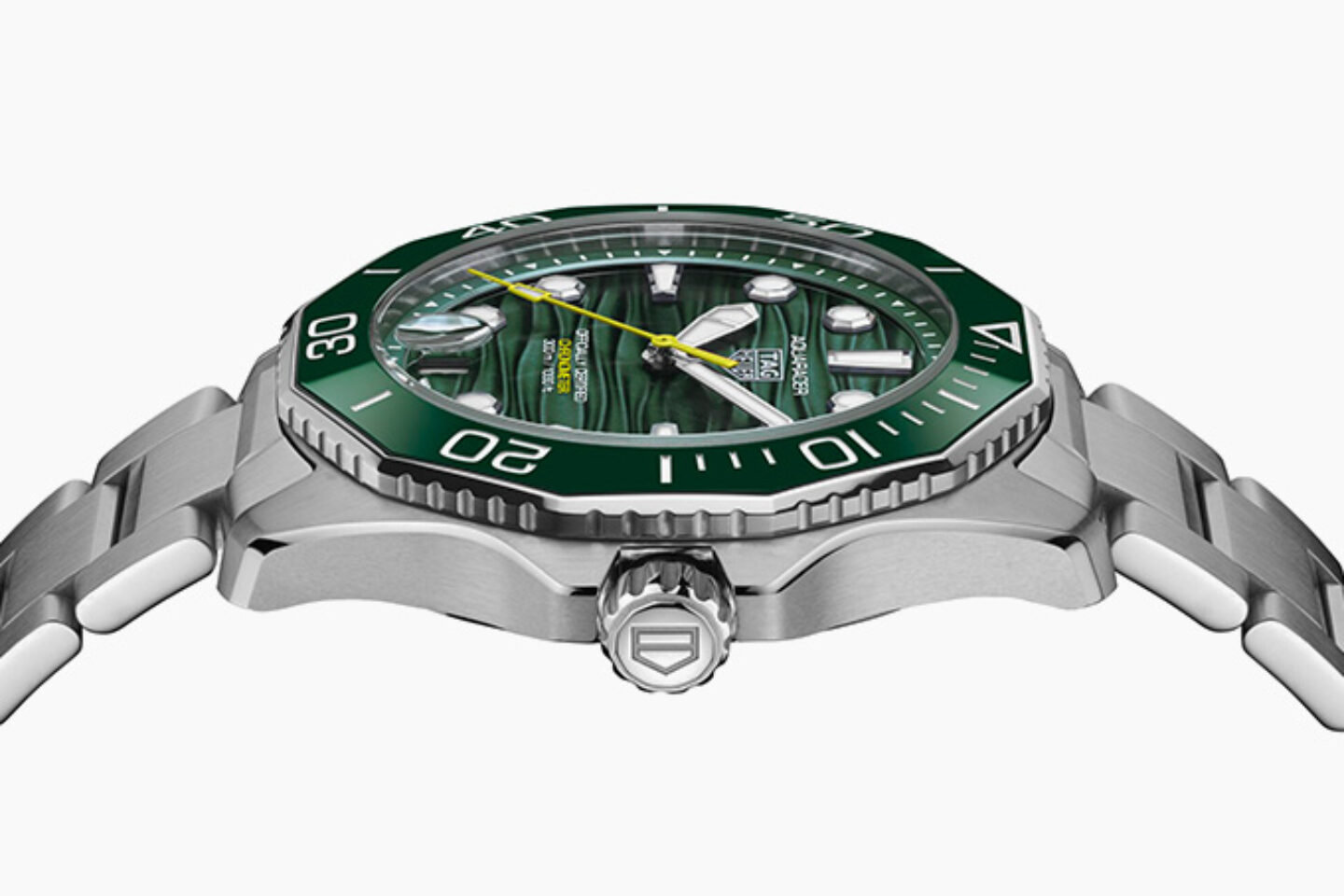 不可否认,提及泰格豪雅很多人最先想到的型号是 Monaco 或 Carrera ,至于潜水系列并不算是品牌的旗舰手表,尽管如此,Aquaracer(竞潜系列)的粉丝基数也不容小觑。此番 Aquaracer Professional 300 迎来大更新,两枚新作都保留了之前版本的设计语言,但整体外观无疑更加时髦。指针和时标现采用镀铑处理,被十二边形表圈包围。表盘经过 3D 涂漆工艺加工,其水平线条呈现独特的波浪纹效果,有一种 Omega Seamaster 即视感。值得留意的是,新版腕表的尺寸从 43 毫米减小到更适中的 42 毫米,表耳间距缩小至 48 毫米,其中 Date 型号厚度仅为 12 毫米,而 GMT 型号的厚度则高达 13.45 毫米。